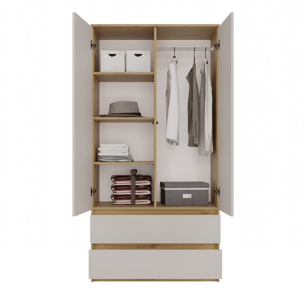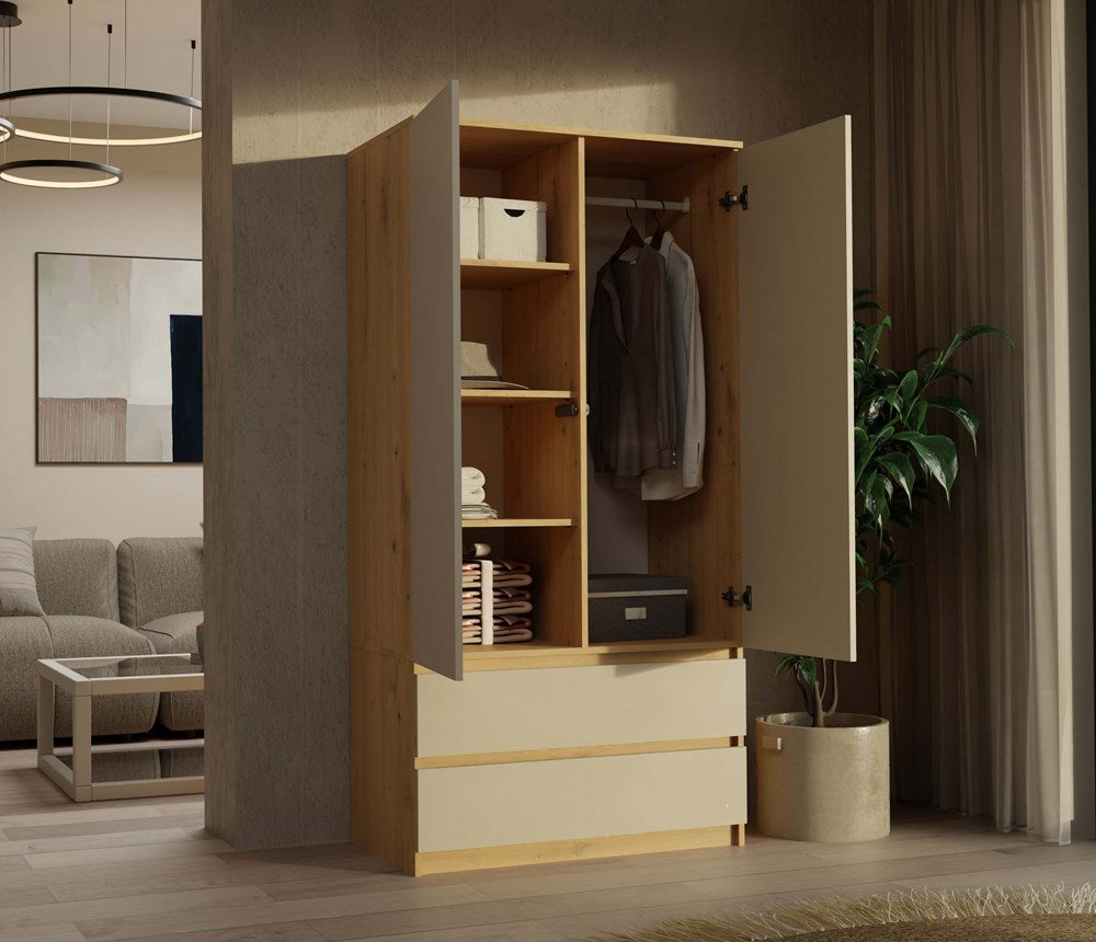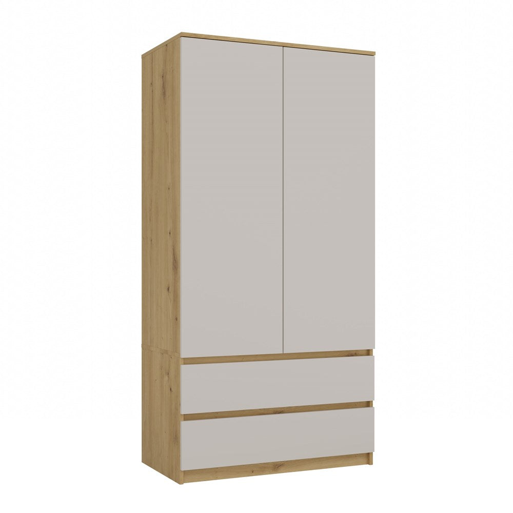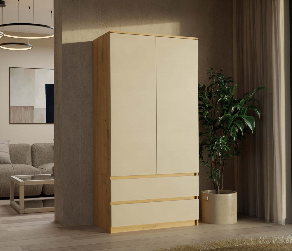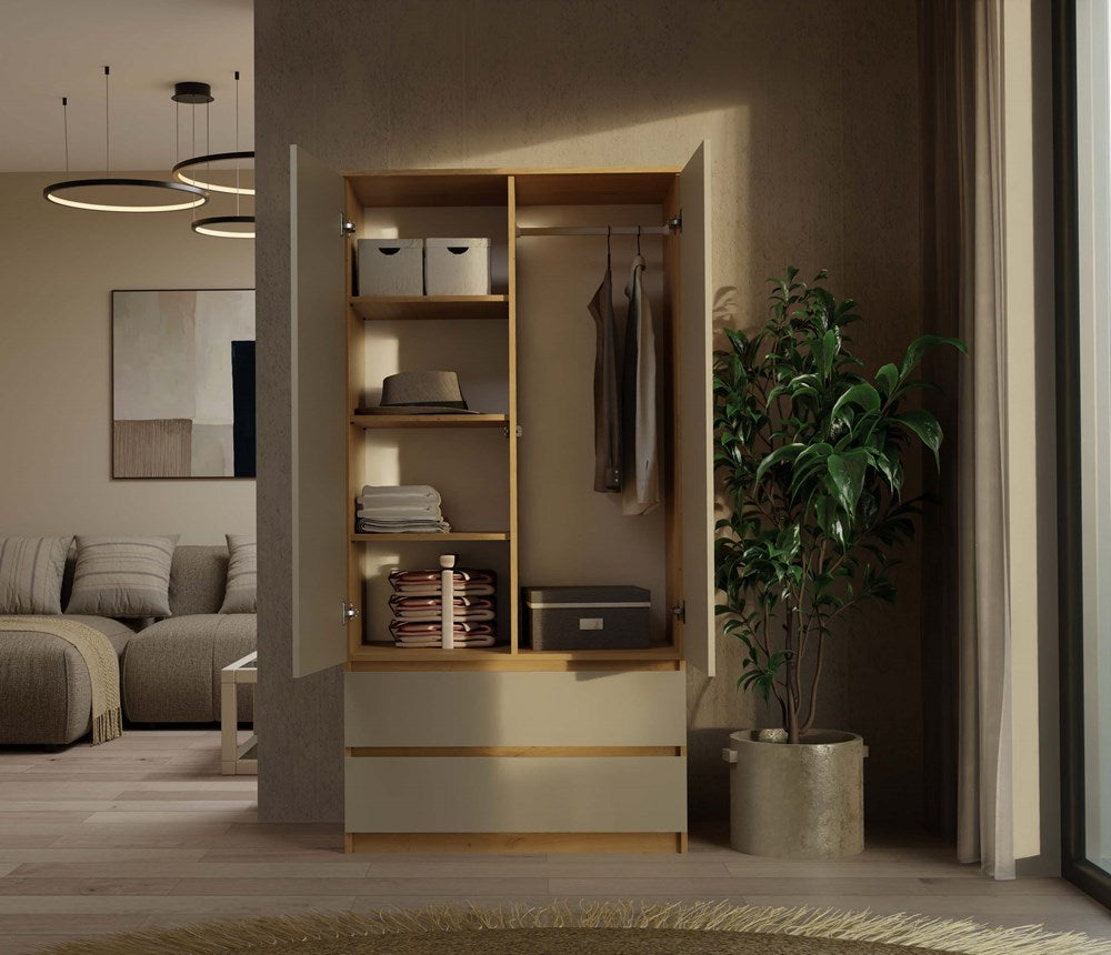 Moderne MALWA SS-90 Garderobekast met 2 Lades en TIP-ON Systeem | Artisan eik/Kashmir | 90x180x50 cm
