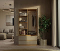 De MALWA SS-90 kledingkast is de perfecte combinatie van elegantie en functionaliteit. Dit meubelstuk past moeiteloos in iedere slaapkamer, kantoor of kleedkamer dankzij het modieuze ontwerp in artisan eik en kashmir. De kast beschikt over vijf ruime planken, een stevige metalen roede en twee ruime lades op rolgeleiders, waardoor je kleding, accessoires en documenten overzichtelijk en veilig kunt opbergen. De greeploze deuren met het innovatieve TIP-ON systeem zorgen voor optimaal gebruiksgemak en een strak uiterlijk zonder zichtbare openingen.