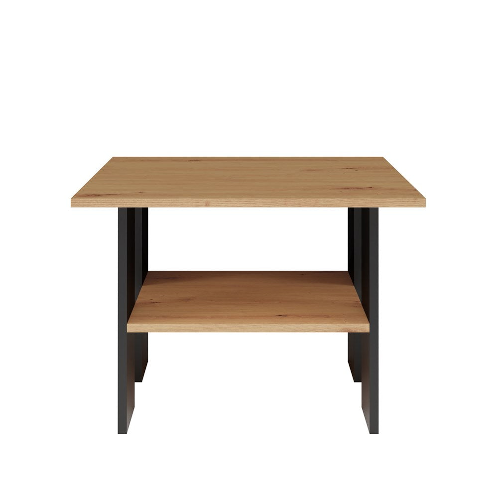Moderne salontafel en bank “MODERNA” met extra plank | Artisan Oak & Mat Zwart | 60x60x45 cm