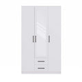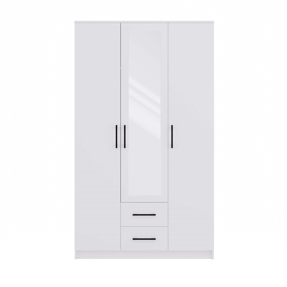 Moderne slaapkamerkast ROMANA 120 met spiegel - 3 deuren & lades | Kleur: Wit | Maat: 205x120x52 cm