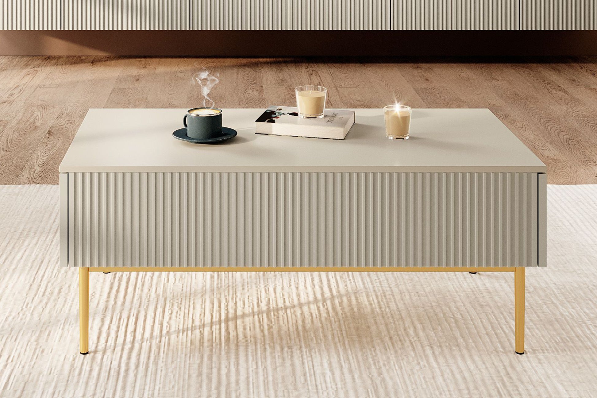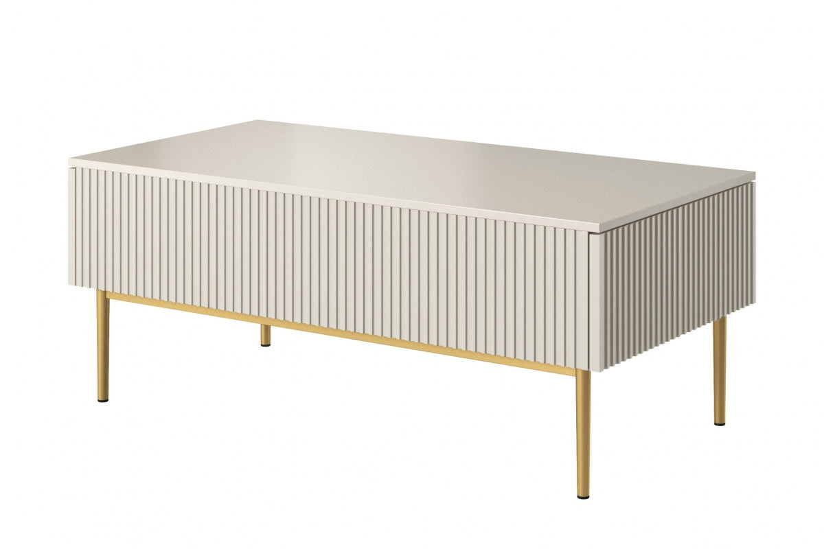 Nicole salontafel 120 cm met opberglades - Kasjmier en gouden poten | Kleur: Kasjmier