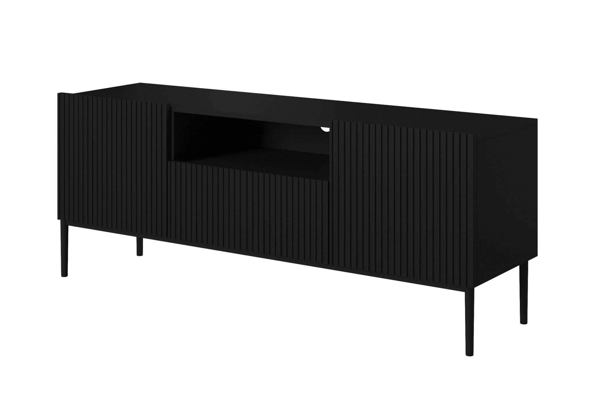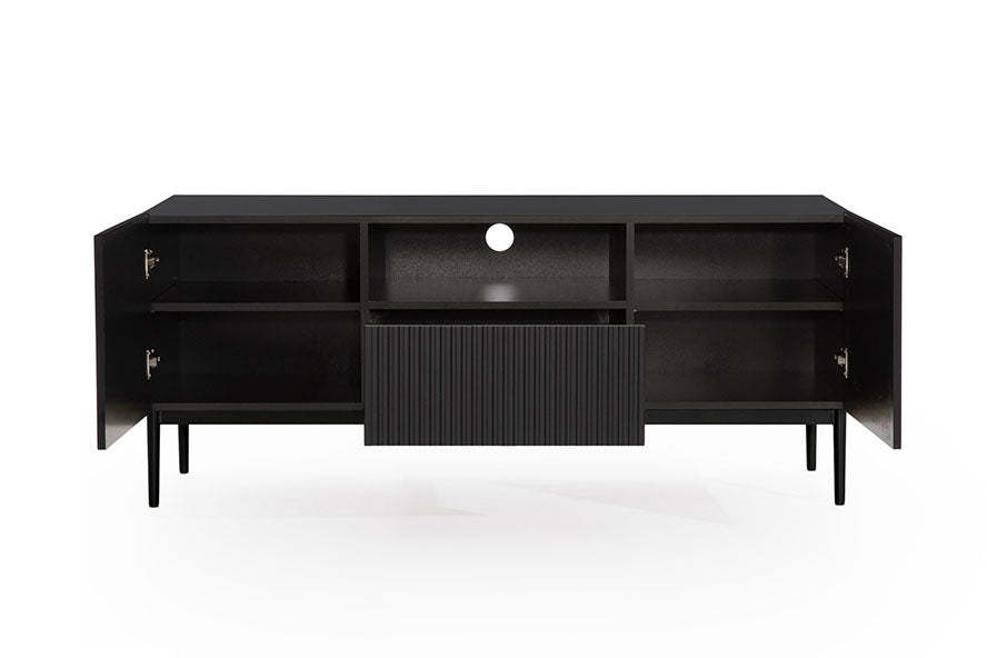 Nicole TV-meubel 150 cm met lade en uitsparing – matzwart/zwarte poten