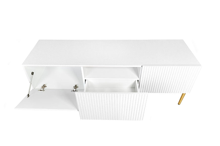Nicole TV-meubel 150 cm – Mat Wit met Gouden Poten en Lade