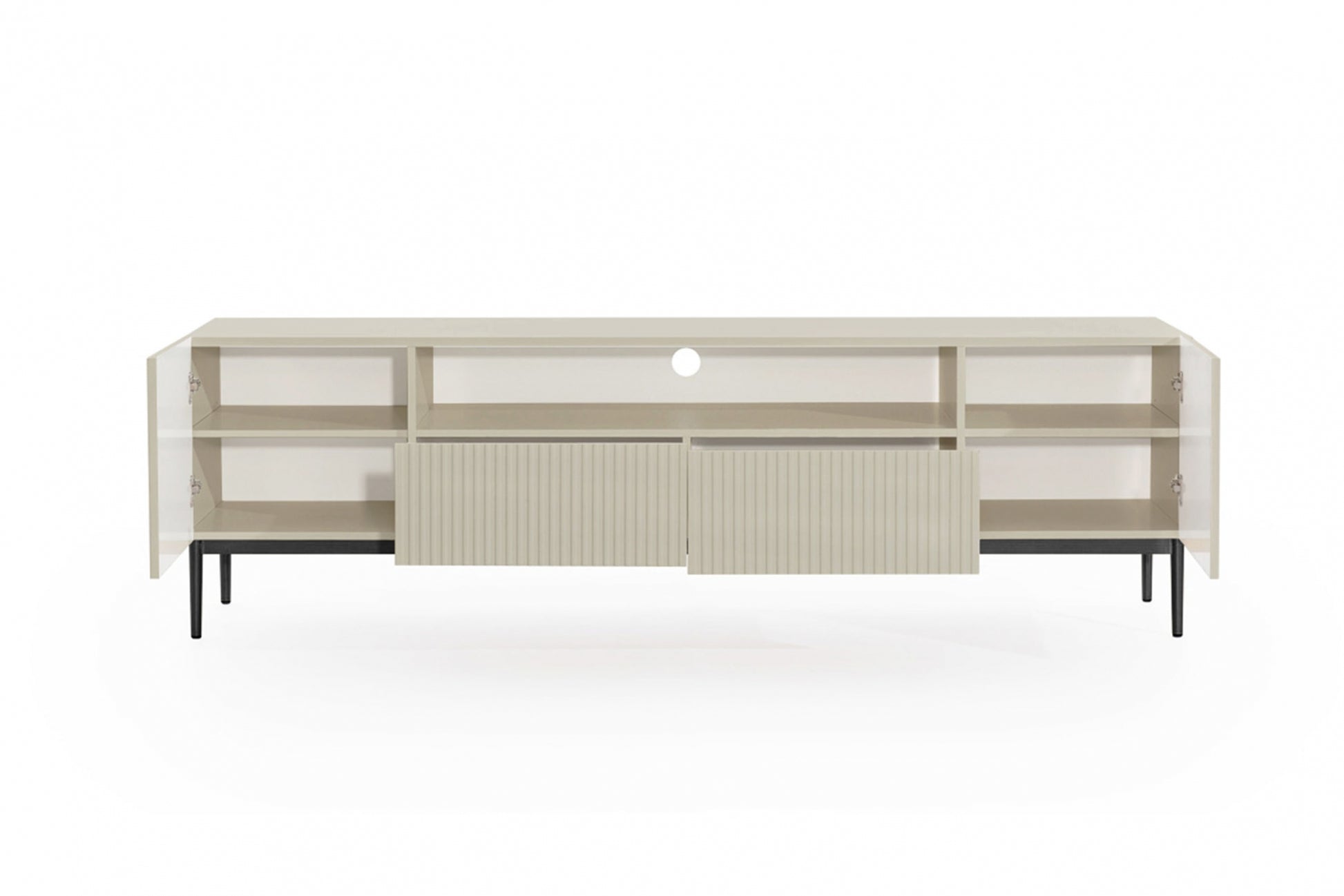 Nicole TV-meubel 200 cm met nis en lades – kasjmier/zwarte poten