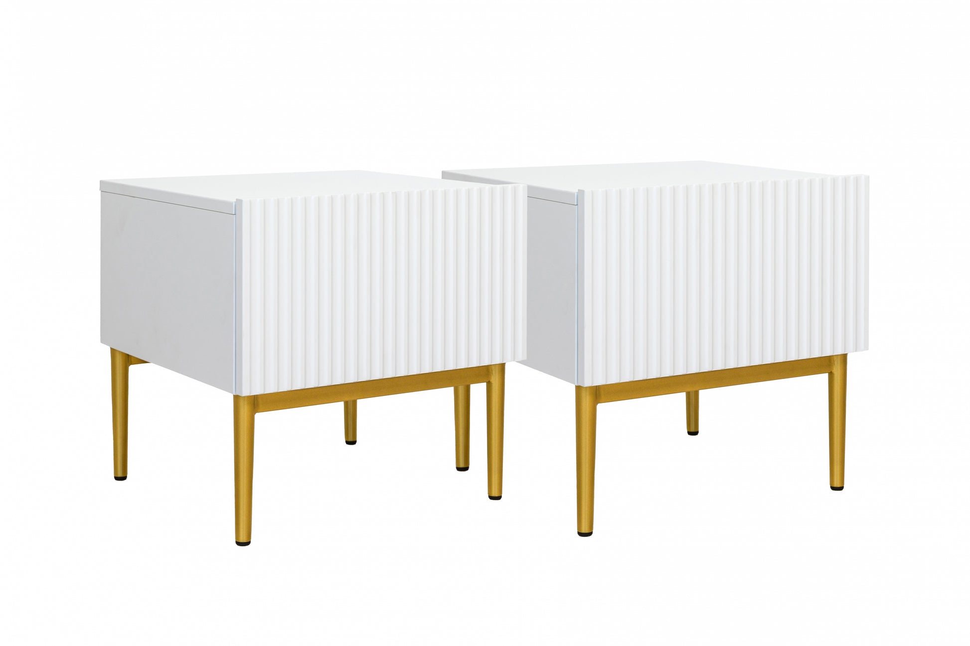 Set van 2 Nachtkastjes Nicole – Mat Wit met Gouden Metalen Poten