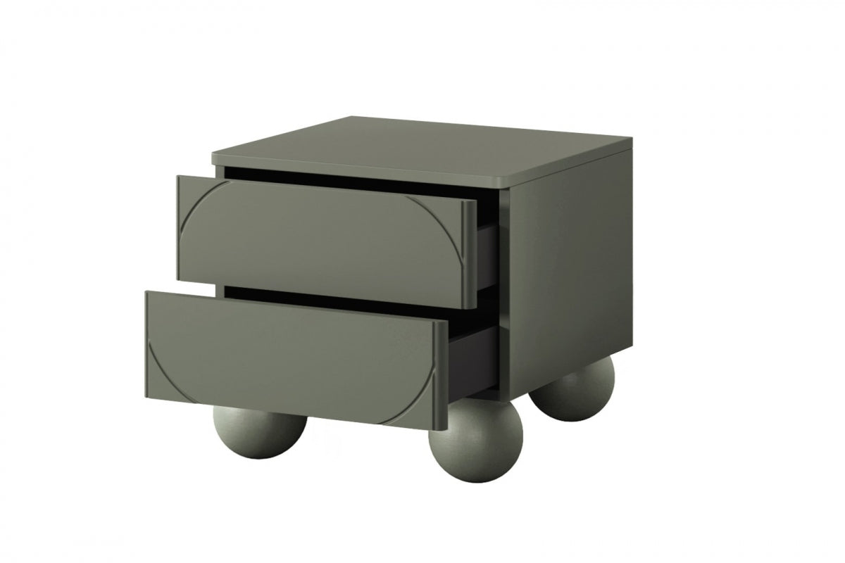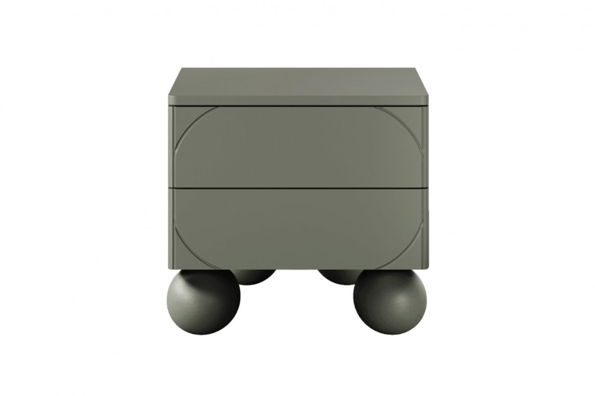Sonatia II Nachtkastje met Twee Laden op Krukpoten – 45 cm Olijfgroen