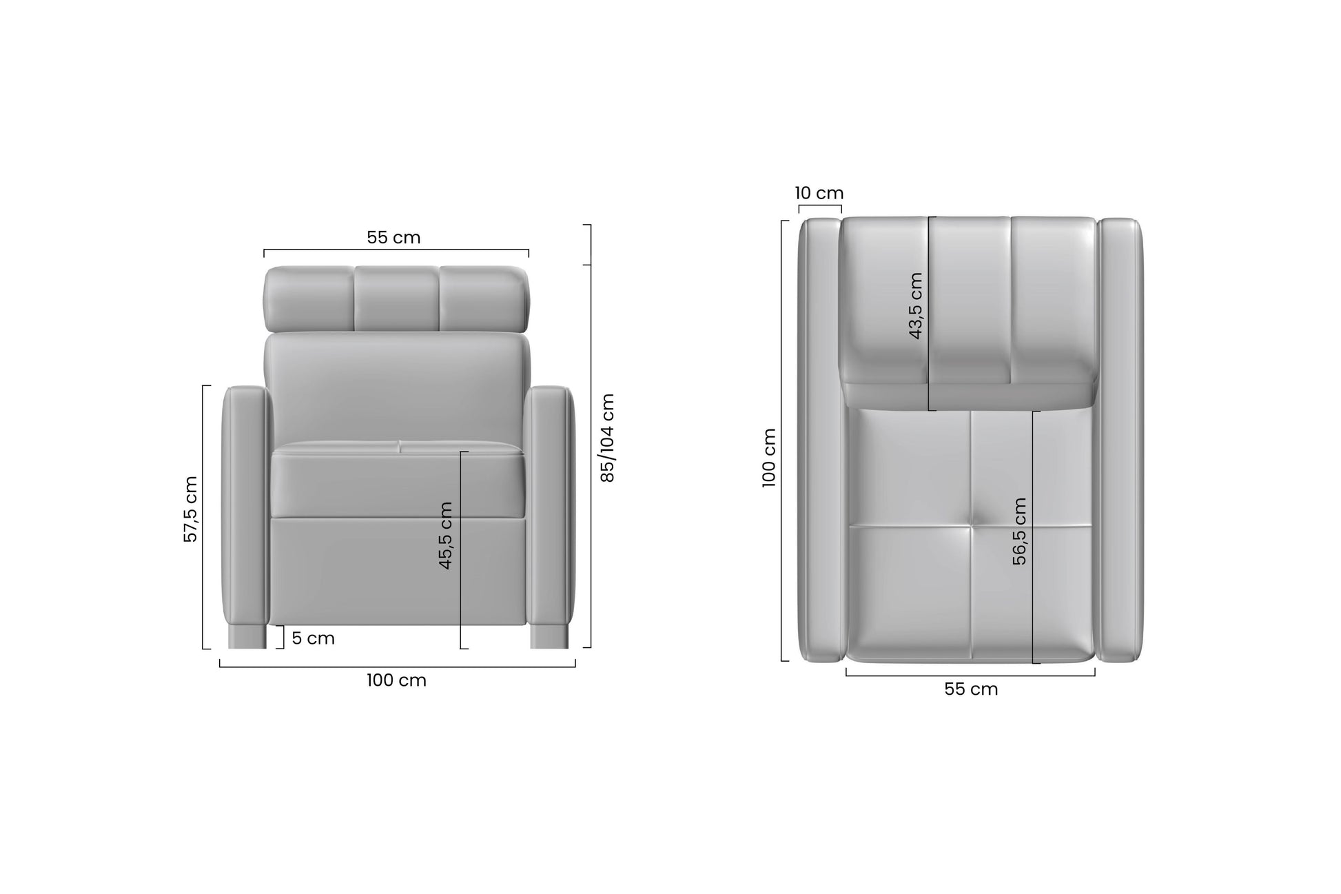 - Zithoogte: 45,5 cm