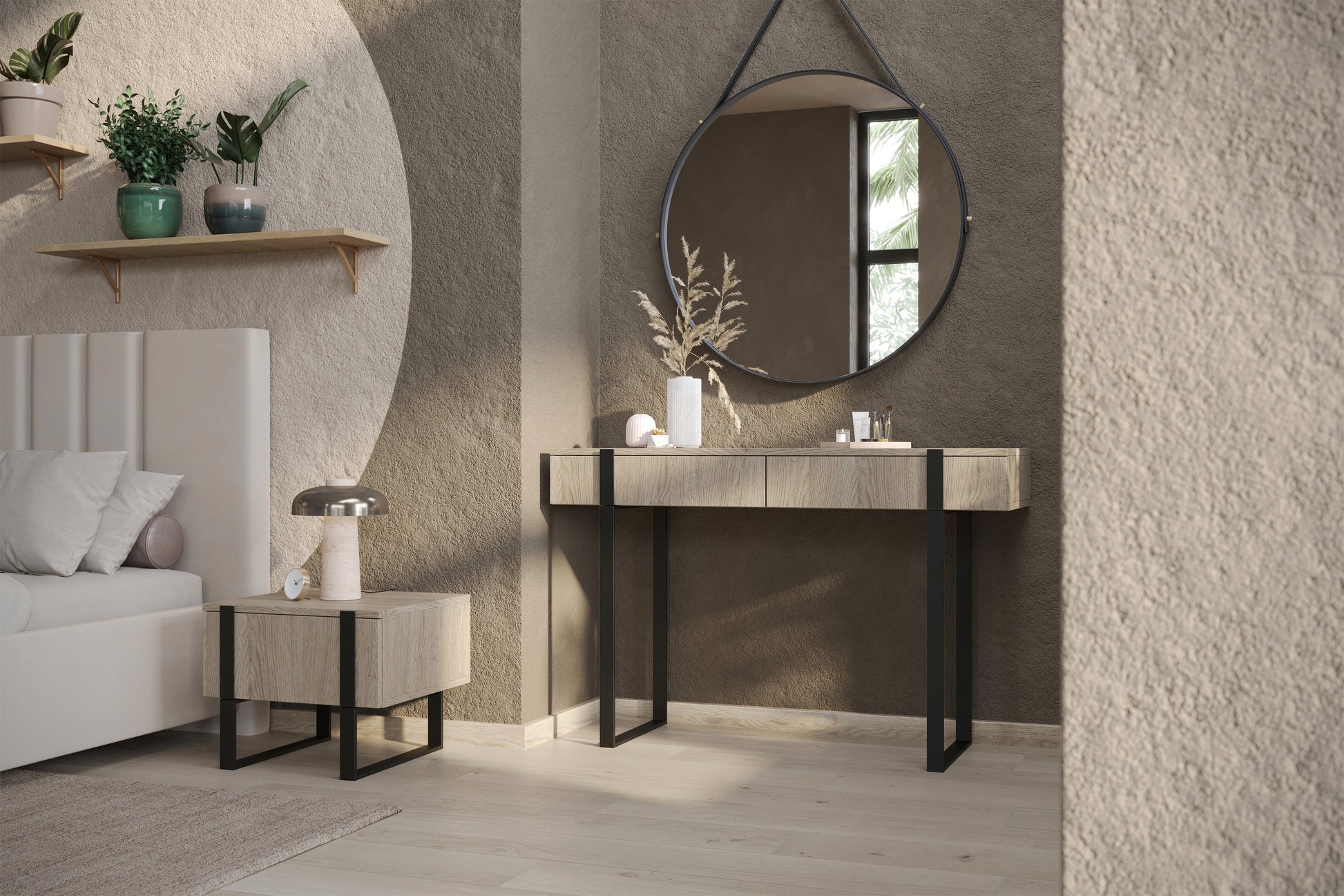 - Kleur: Biscuit eiken (romig) / zwarte poten