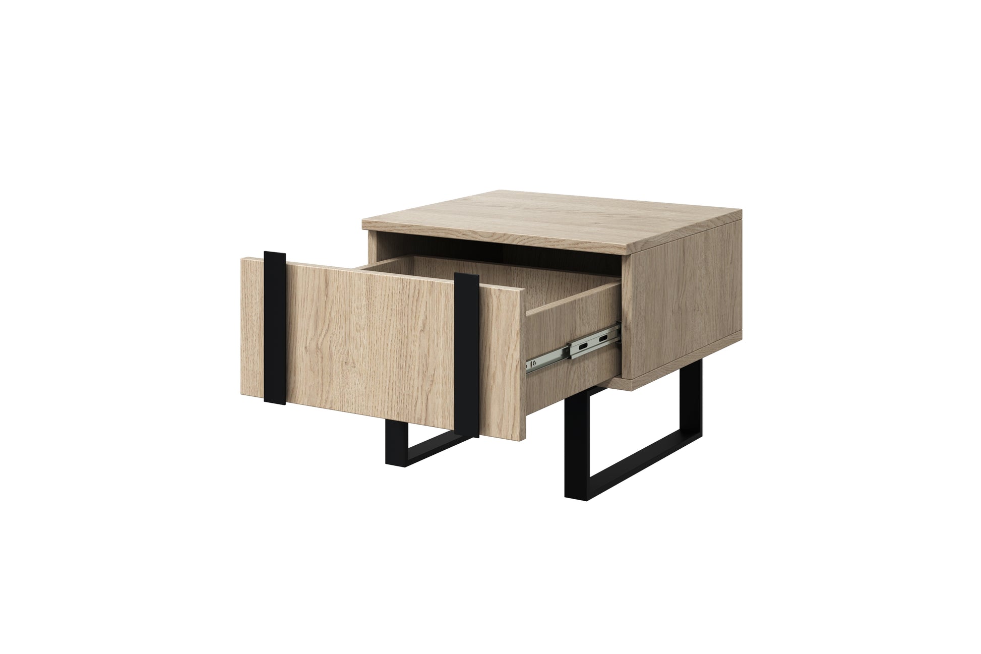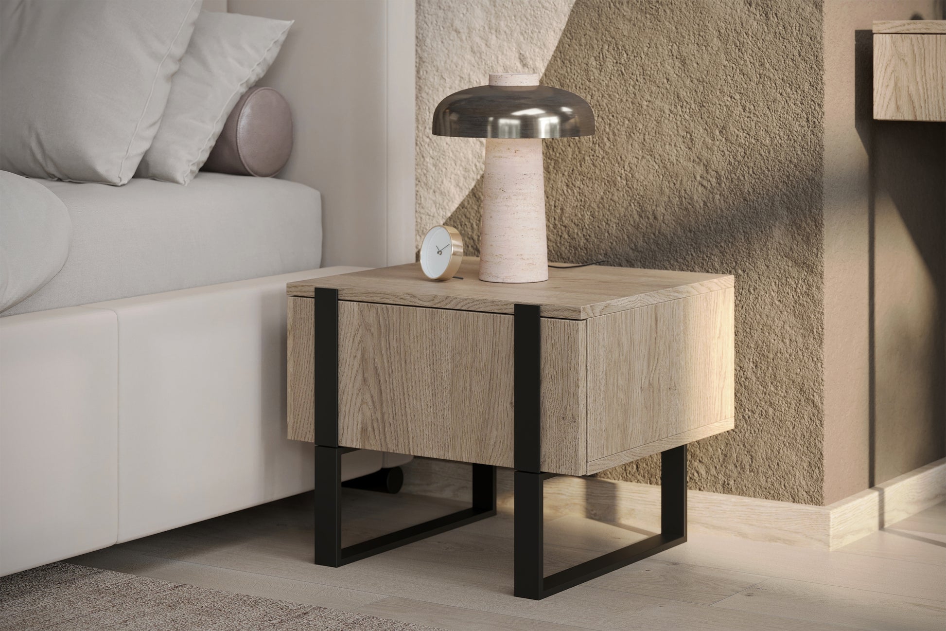 Verica nachtkastje set met lades en metalen poten - Biscuit Eiken | Zwart | 50x40x45 cm