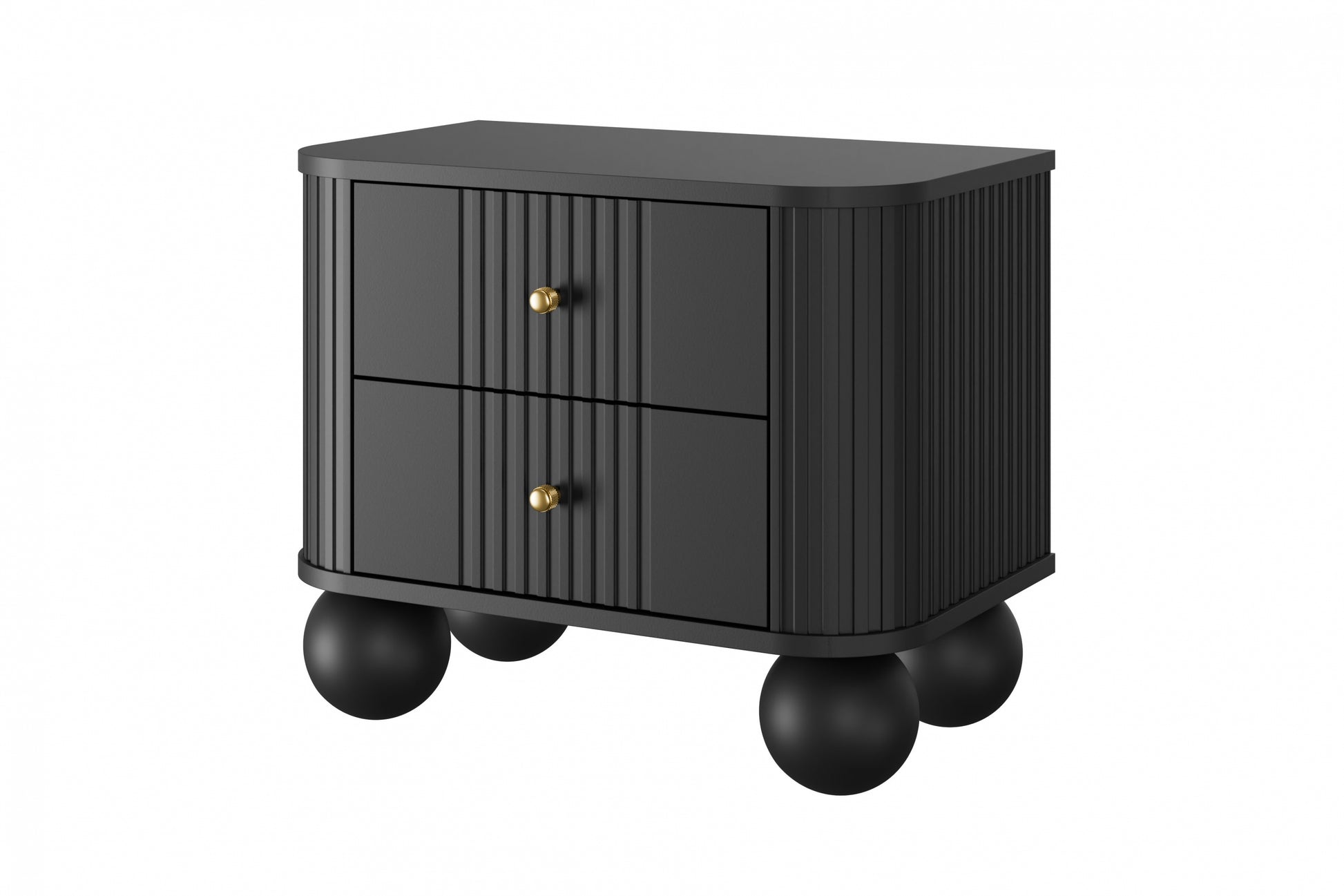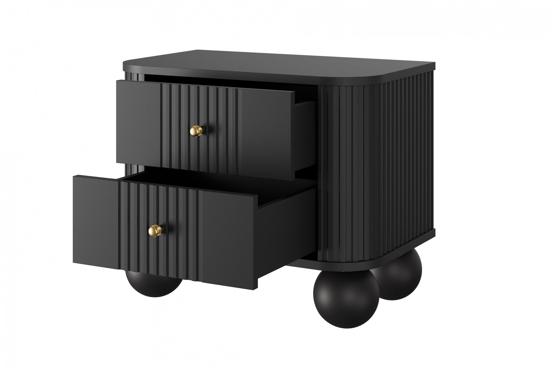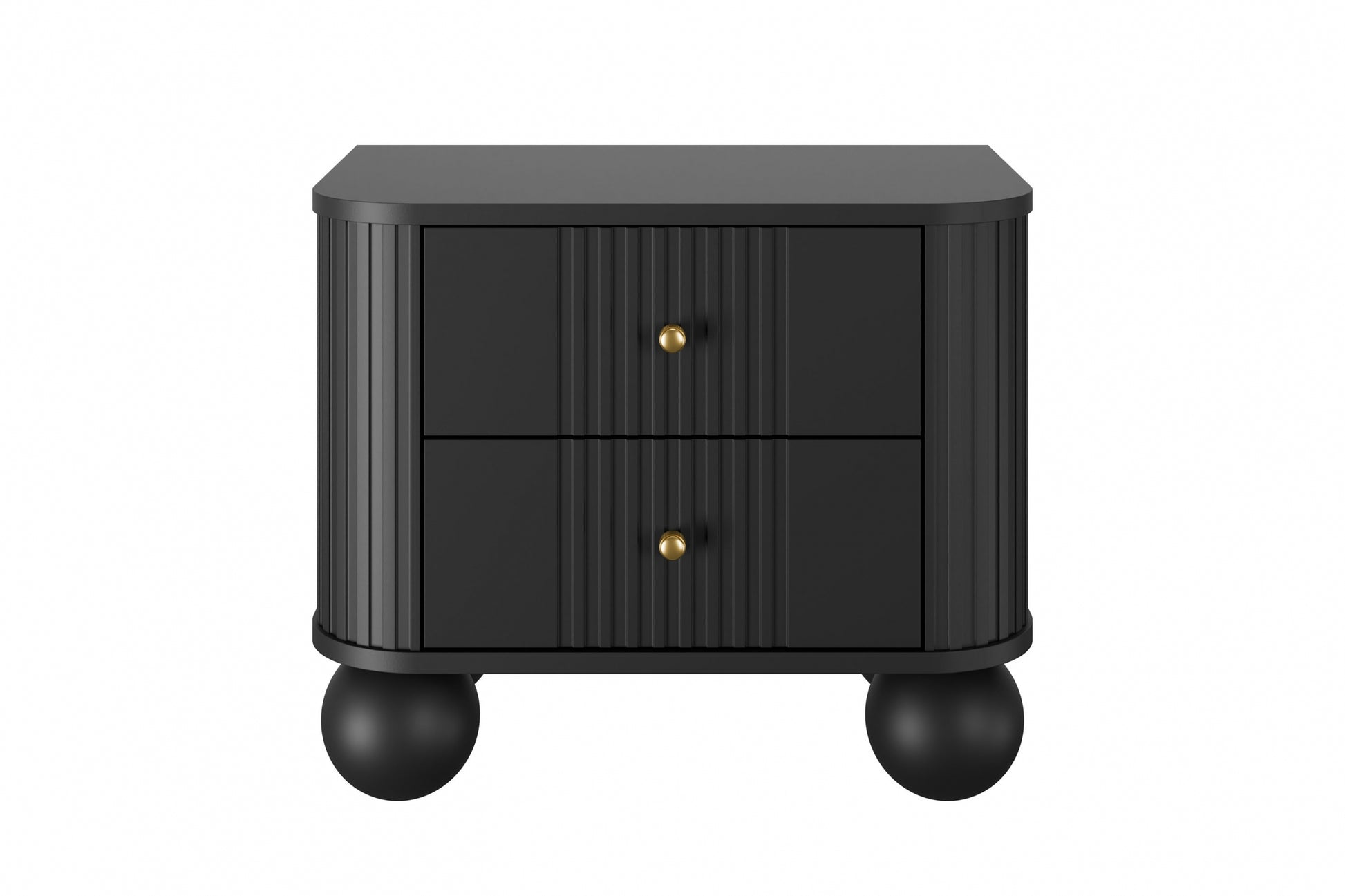 Vesper 56 cm Nachtkastjes Set – Zwart met Gouden Handgrepen en Bolpoten