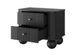 Ervaar pure elegantie in uw slaapkamer met de Vesper 56 cm nachtkastjeset. Deze set van twee nachtkastjes, uitgevoerd in stijlvol zwart, is voorzien van chique gouden handgrepen en opvallende bolpoten van massief hout. De gegroefde MDF-fronten met subtiele, afgeronde randen creëren een moderne klassieke uitstraling die direct uw interieur verrijkt. Dankzij de uitvoering in gelamineerde plaat van 16 mm en beschermende ABS-randen, geniet u jarenlang van een duurzaam en krasbestendig meubel. Beide nachtkastjes beschikken over twee ruime lades met een stil sluitmechanisme, ideaal voor dagelijks gebruik.