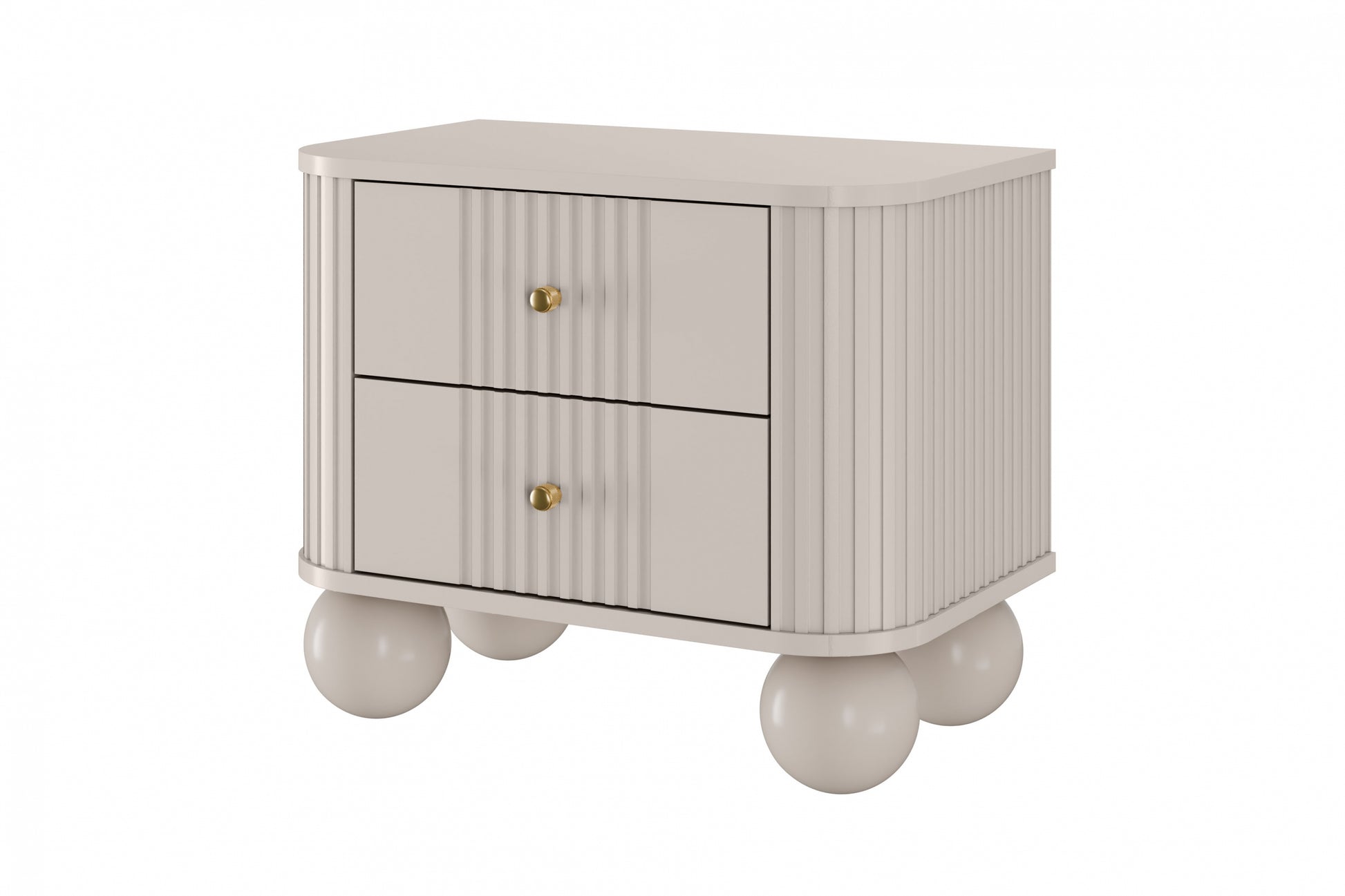 Vesper 56 cm Nachtkastjeset – Kasjmier met Gouden Handvatten en Bolpoten
