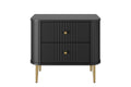 Vesper nachtkastjeset met 2 lades – Modern geribbeld design | Kleur: Zwart & Goud | Maat: 56x51x38