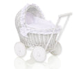 Weißer Puppenwagen aus Naturrohr mit Polsterung und weicher Polsterung
