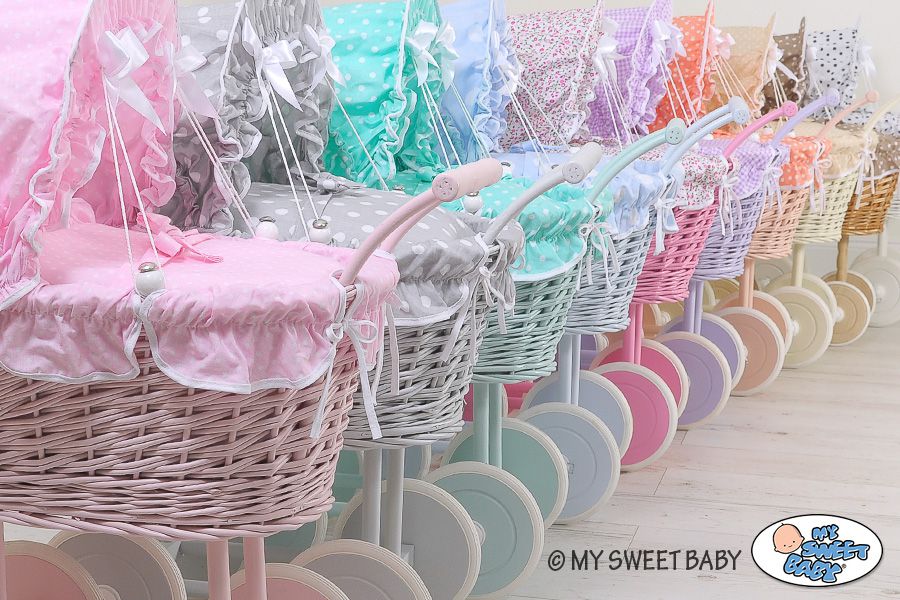 Dieser wunderschöne Puppenwagen „BellaFurn Baby“ ist handgefertigt aus natürlichem, umweltfreundlichem polnischem Korbgeflecht und steht auf einem hohen Holzgestell mit weiß lackierten Holzrädern. Ein stilvolles und einzigartiges Geschenk für kleine Mädchen, die gerne mit Puppen spielen.