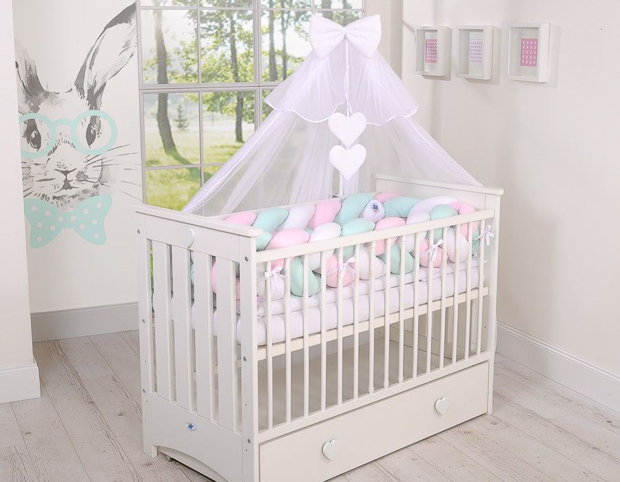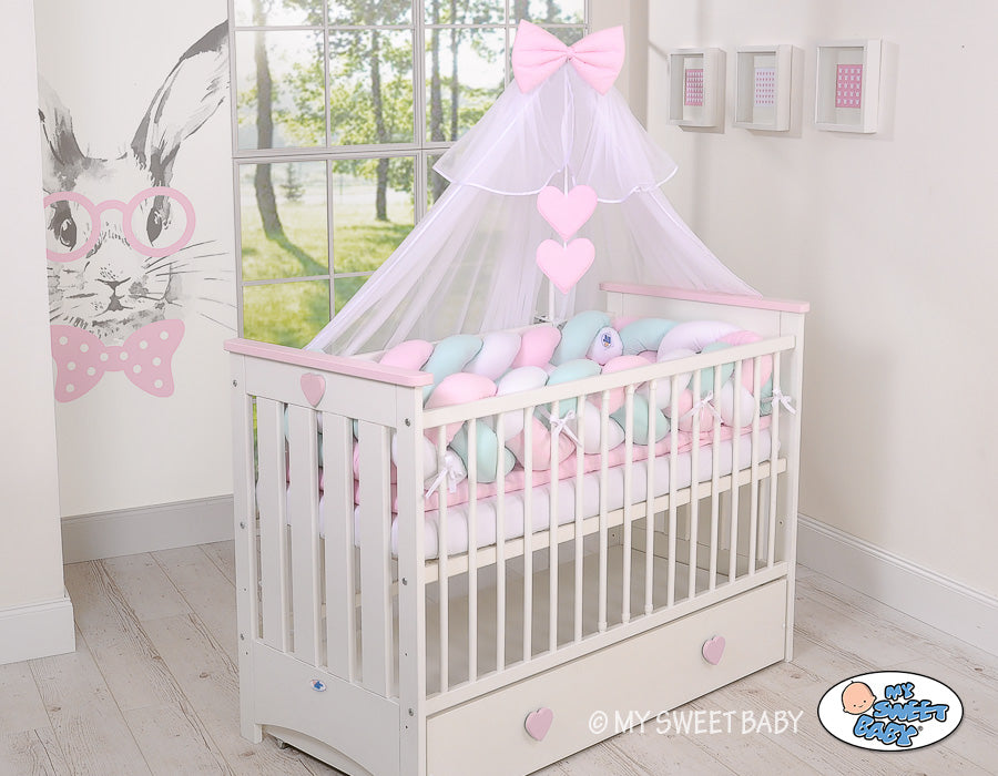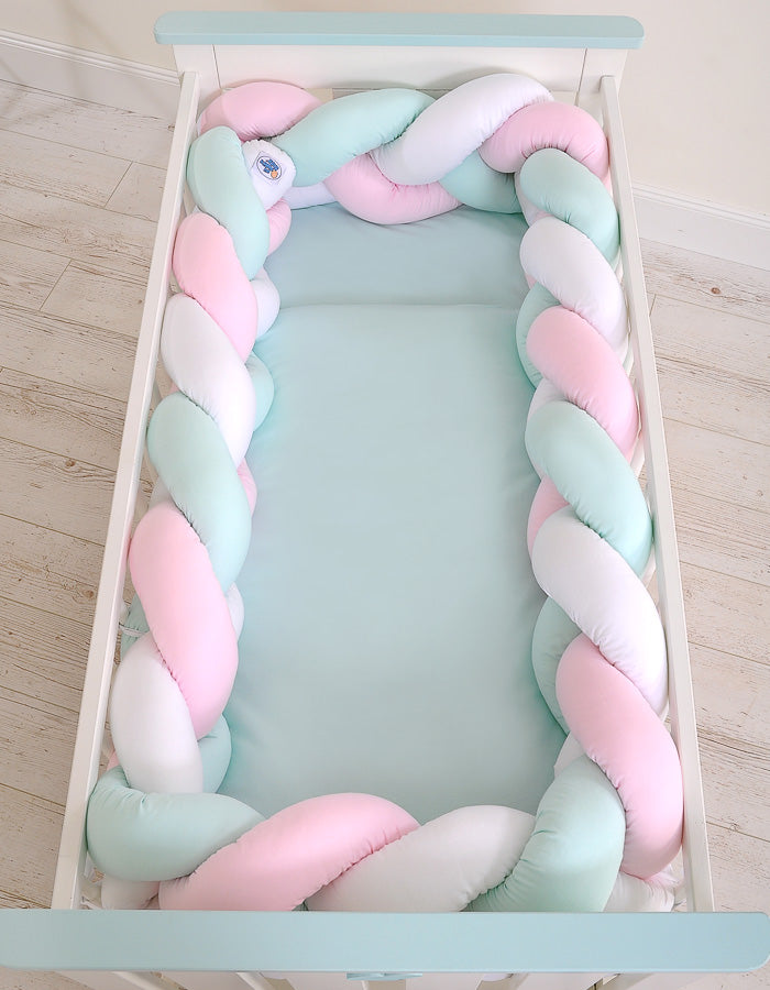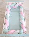 - XXL geflochtener Kinderbettschutz (weiß, rosa und mintgrün)