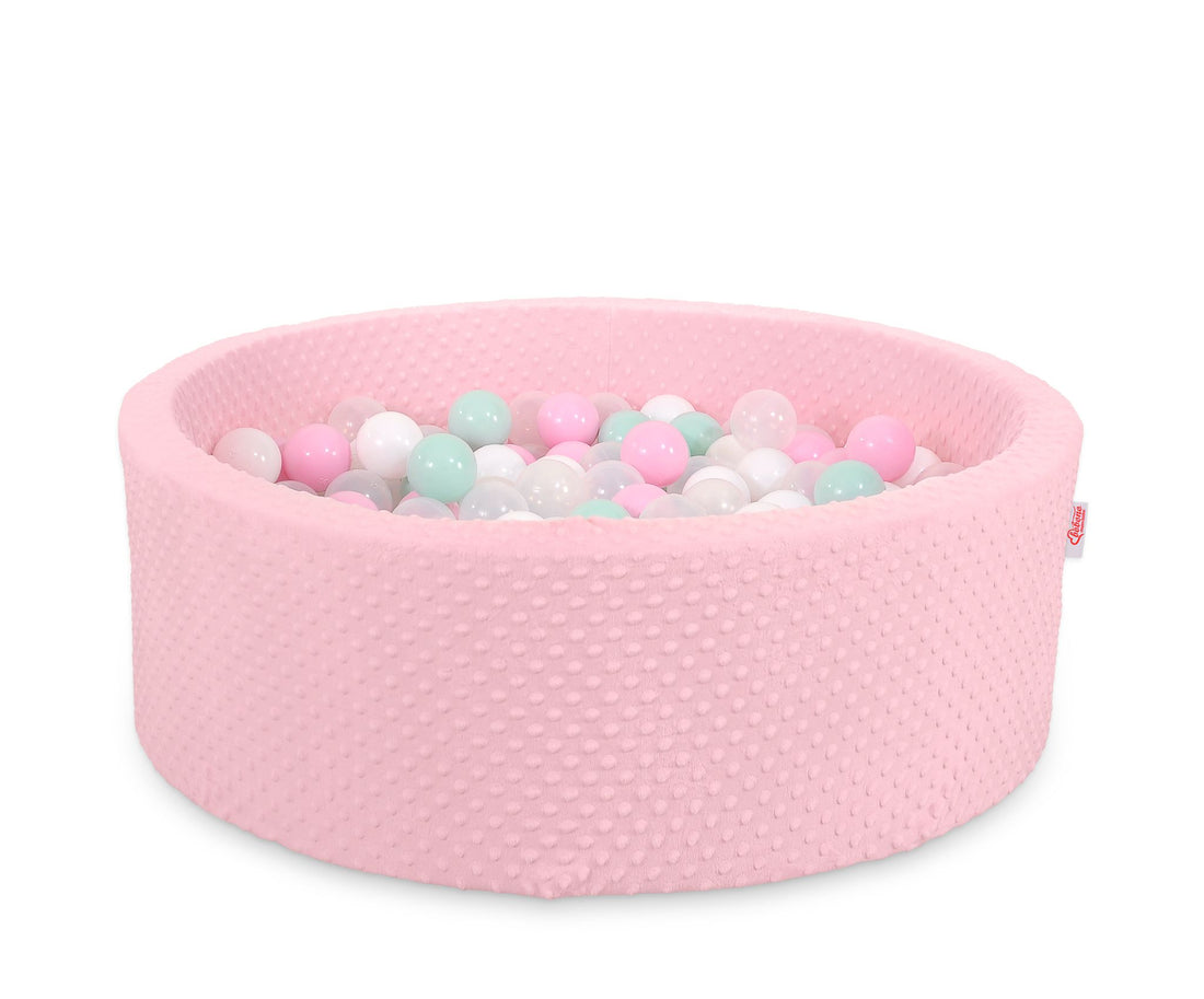 Ballenzwembad, speelbad, veilig en zacht schuim - 200 ballen - roze - Minky fleece hoes