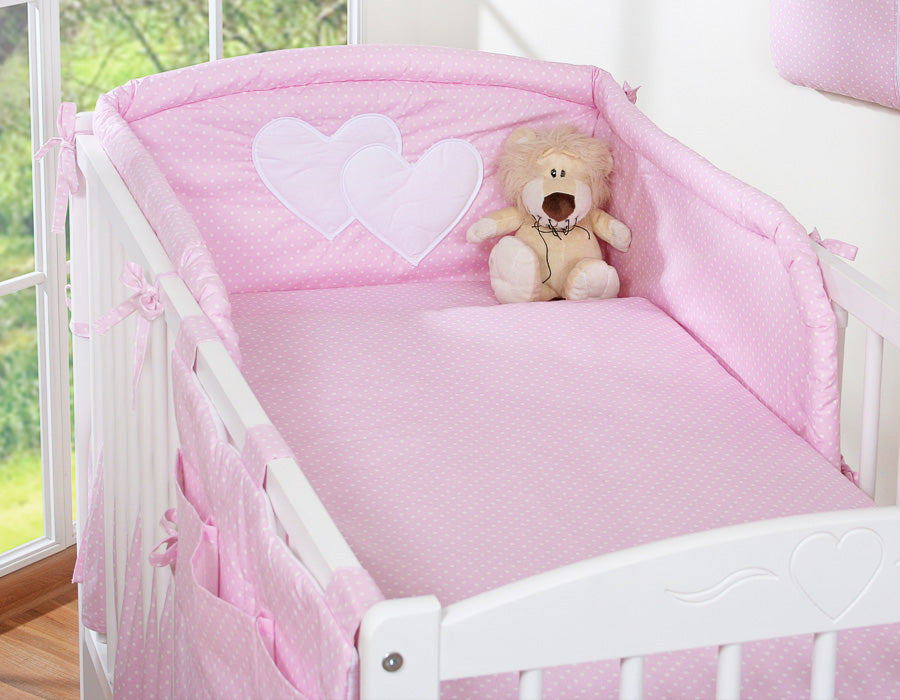 Beddengoed set 2-delig - Hangende Hartjes met witte stippen op roze Ontdek een liefdevol ontworpen...