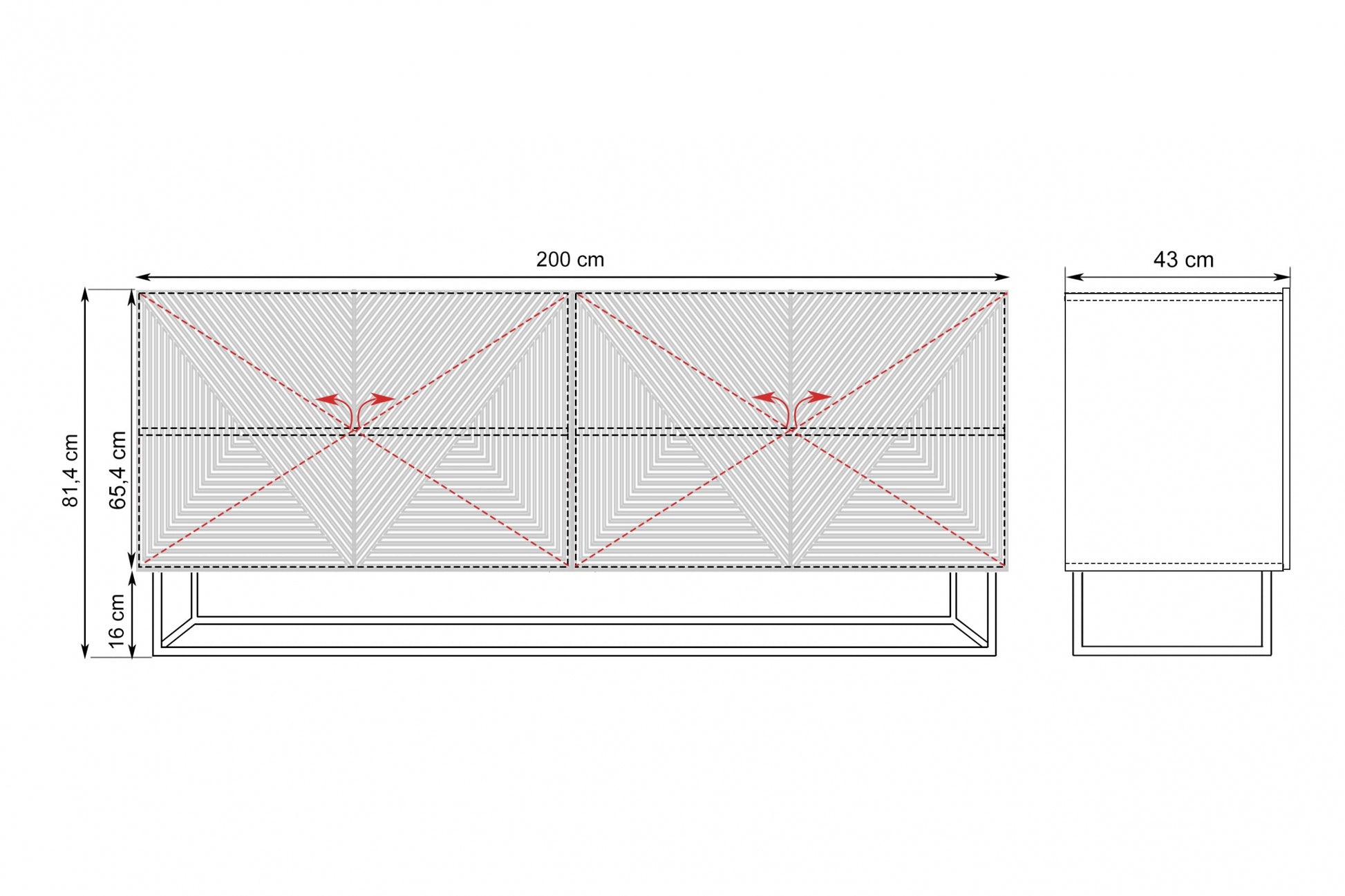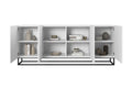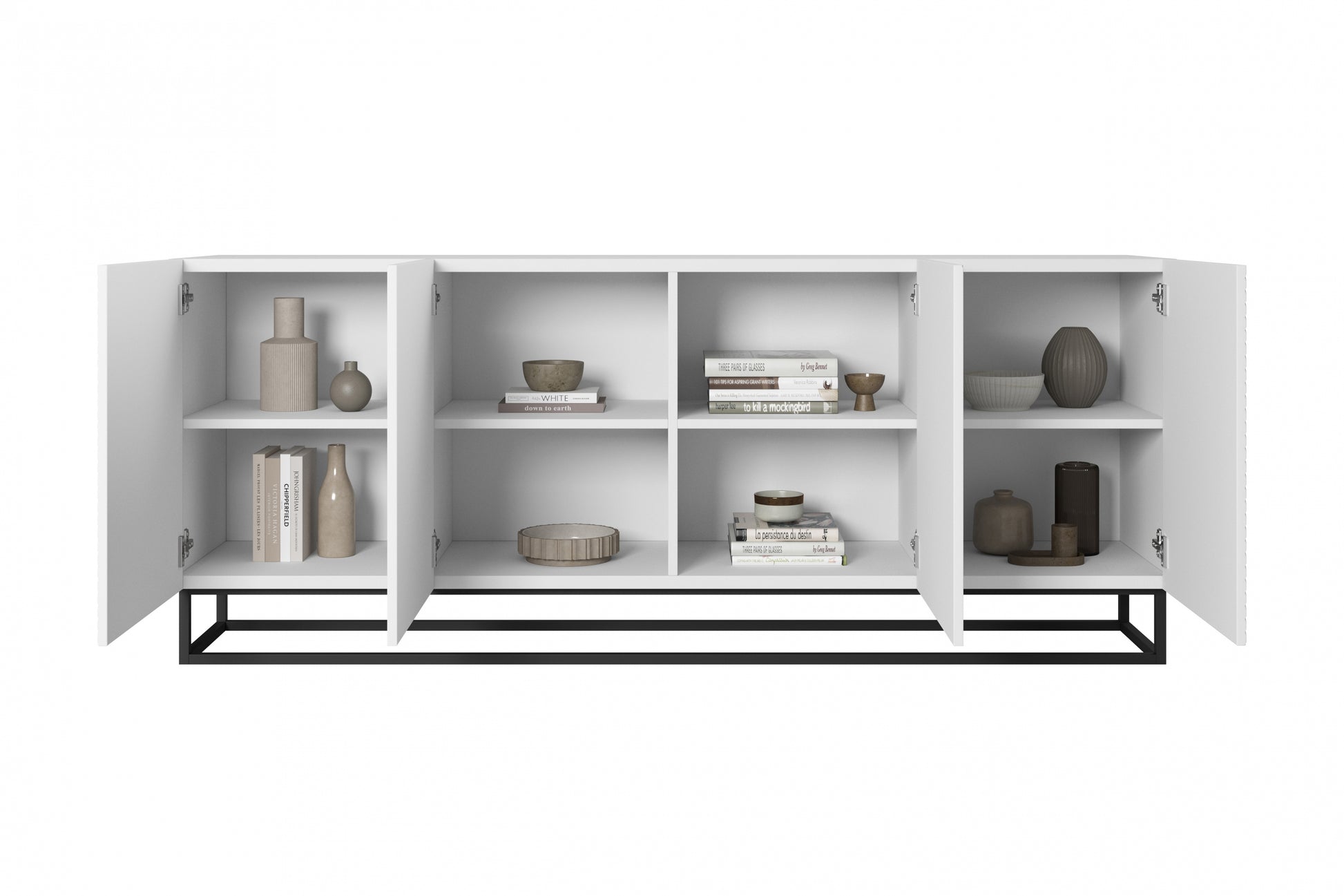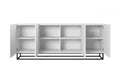 Asha ladekast 200 cm – Vierdeurs greeploos met zwart frame | Wit mat | 200x81x43 cm