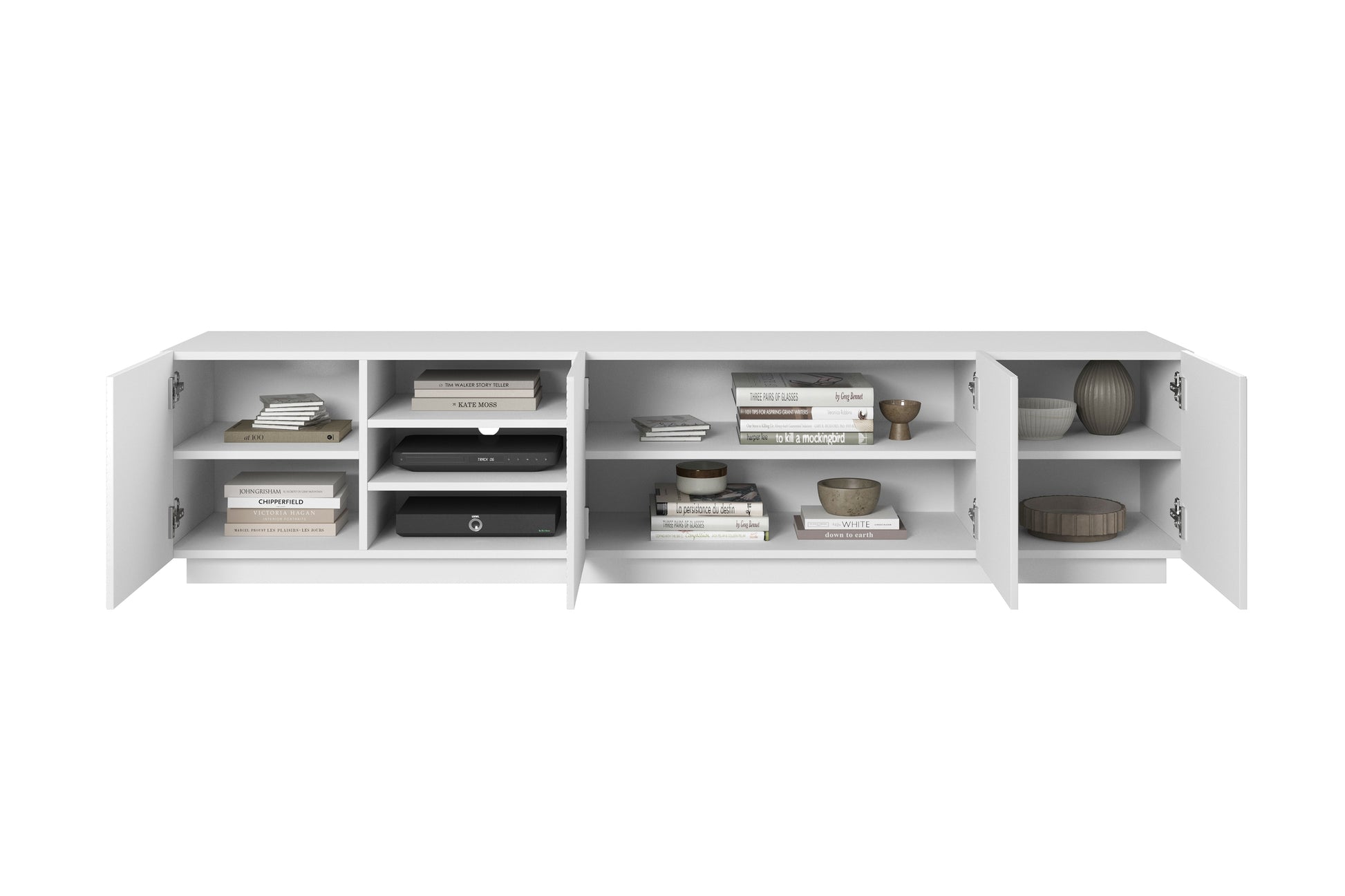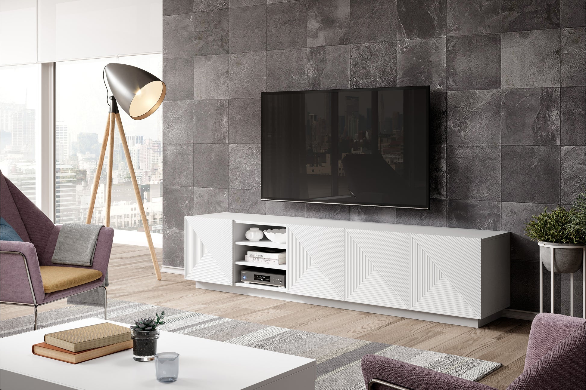 Asha TV-meubel met gegroefd front en nis – 200 cm | Kleur: Mat wit | Maat: 200x46x40 cm