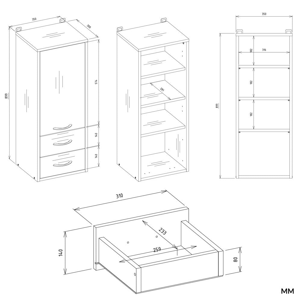 - Afmetingen: 35 cm (breedte) x 90 cm (hoogte) x 30 cm (diepte)