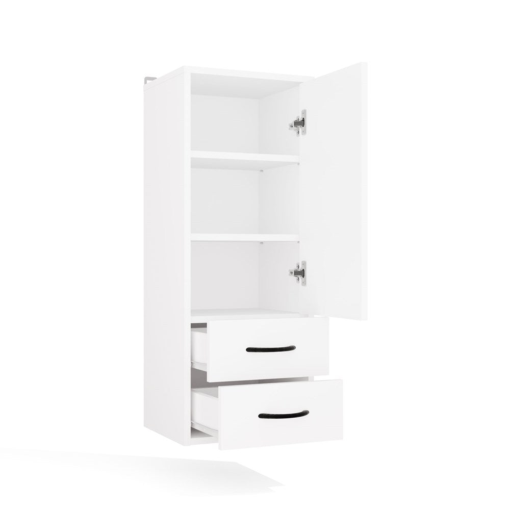 Badkamer hangkast met lades en deur - NINA W1D2S | Mat wit | 35x90x30 cm