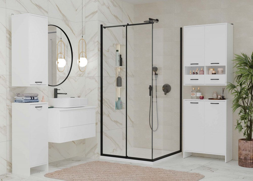 De NINA 1K biedt uw badkamer direct meer structuur: vuile was is uit het zicht, de ruimte blijft opgeruimd. De scharnierende voorkant maakt het legen en vullen van de wasmand eenvoudig en comfortabel. Dankzij de subtiele breedte van 35 cm past deze kast zelfs in smalle badkamers, zonder dat u inlevert op functionaliteit. Geschikt voor dagelijks gebruik door zijn robuuste afwerking en onderhoudsvriendelijke materialen. De zwarte handgreep is niet alleen praktisch, maar geeft ook een modern accent aan het meubelstuk. Ideaal voor gezinnen en mensen die efficiënt ruimtegebruik waarderen.