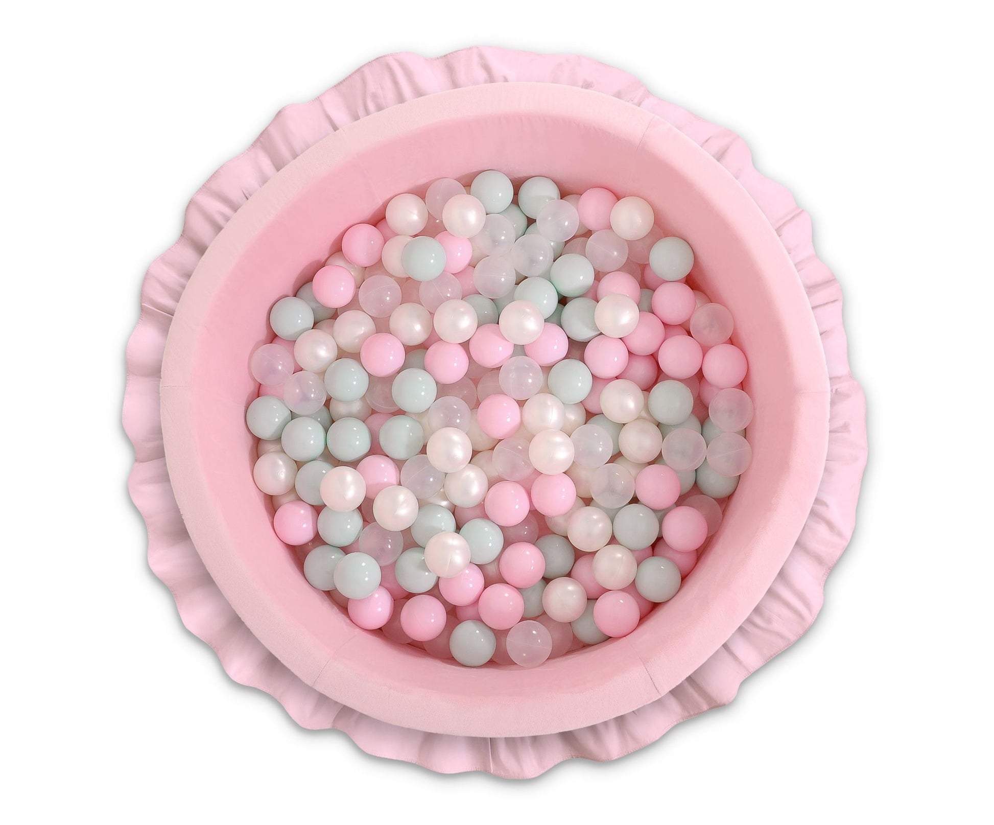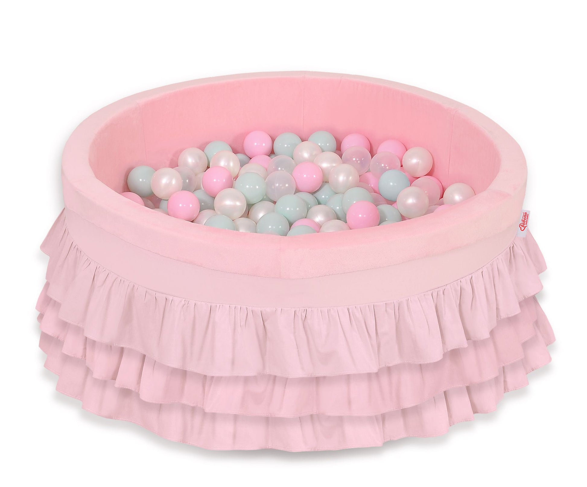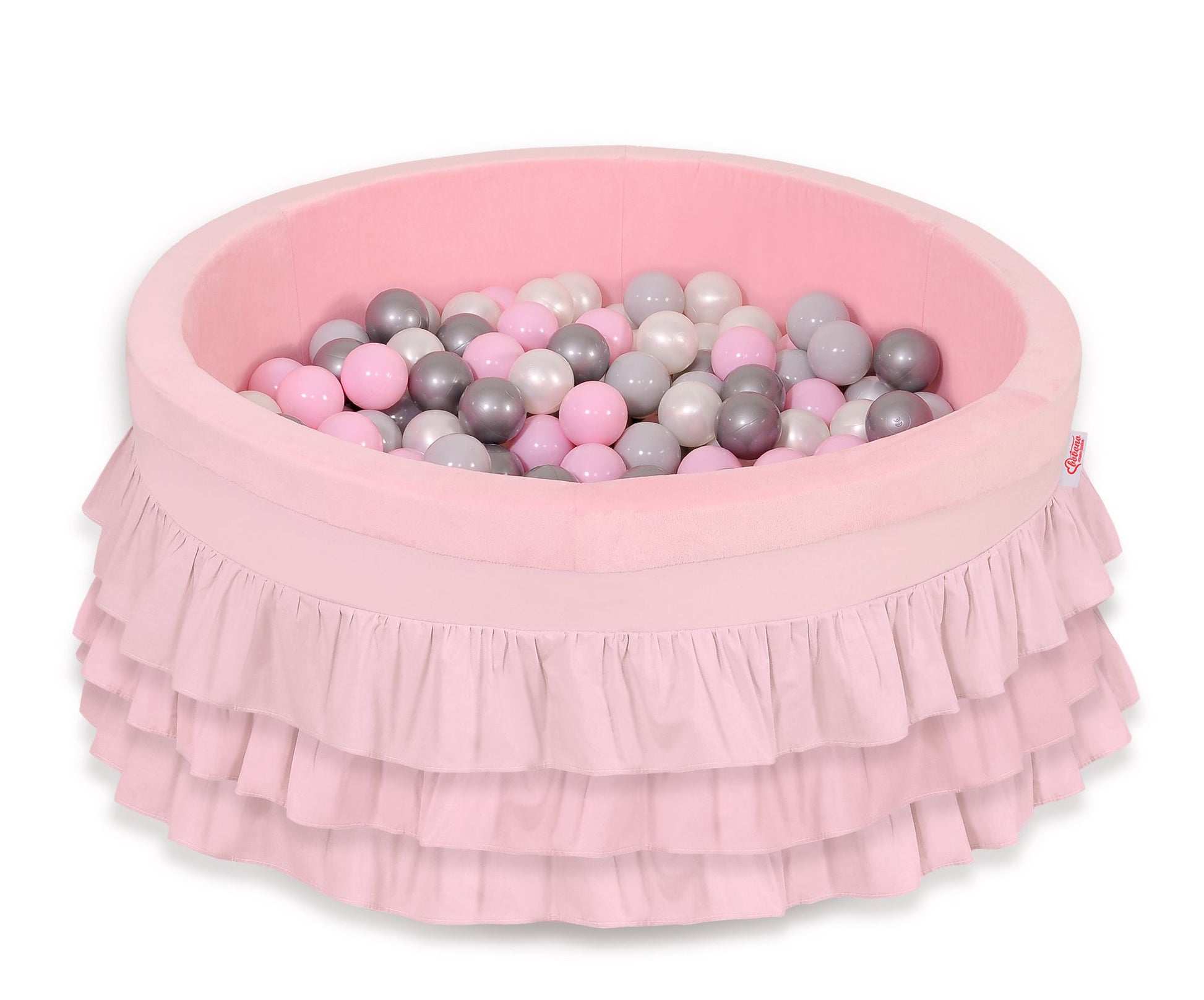 Ballenvat met volant en 200 gekleurde ballen – Roze