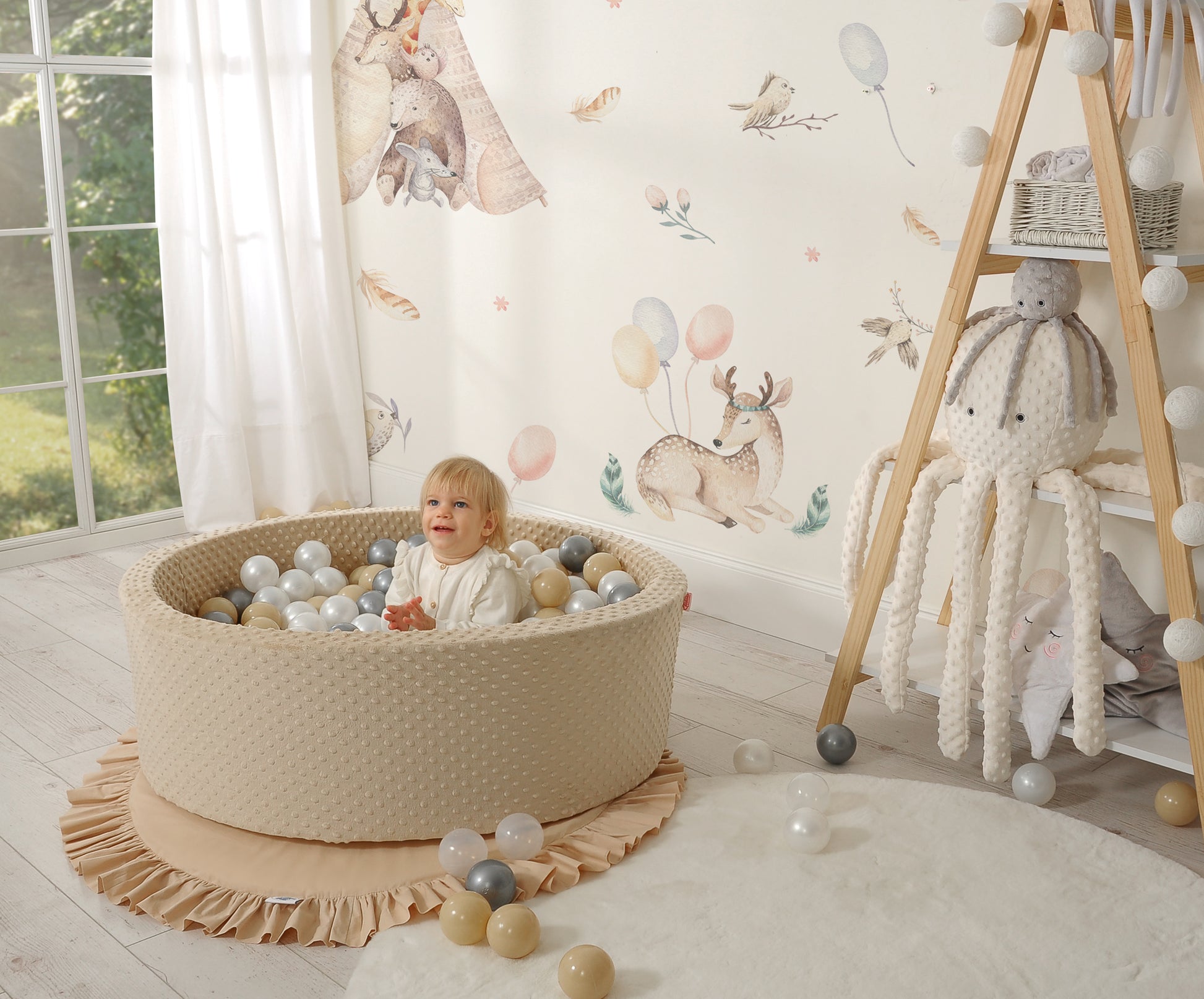 Ballenzwembad, speelbad, stimuleert hand-oog coördinatie - Minky fleece - 300 ballen - beige