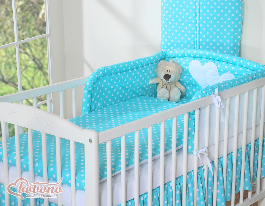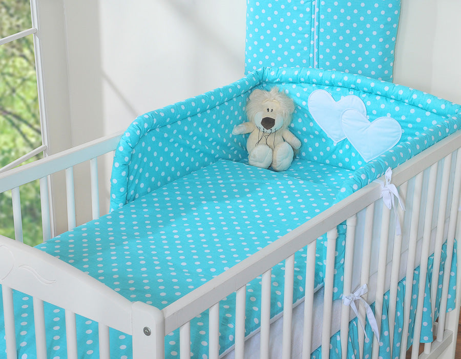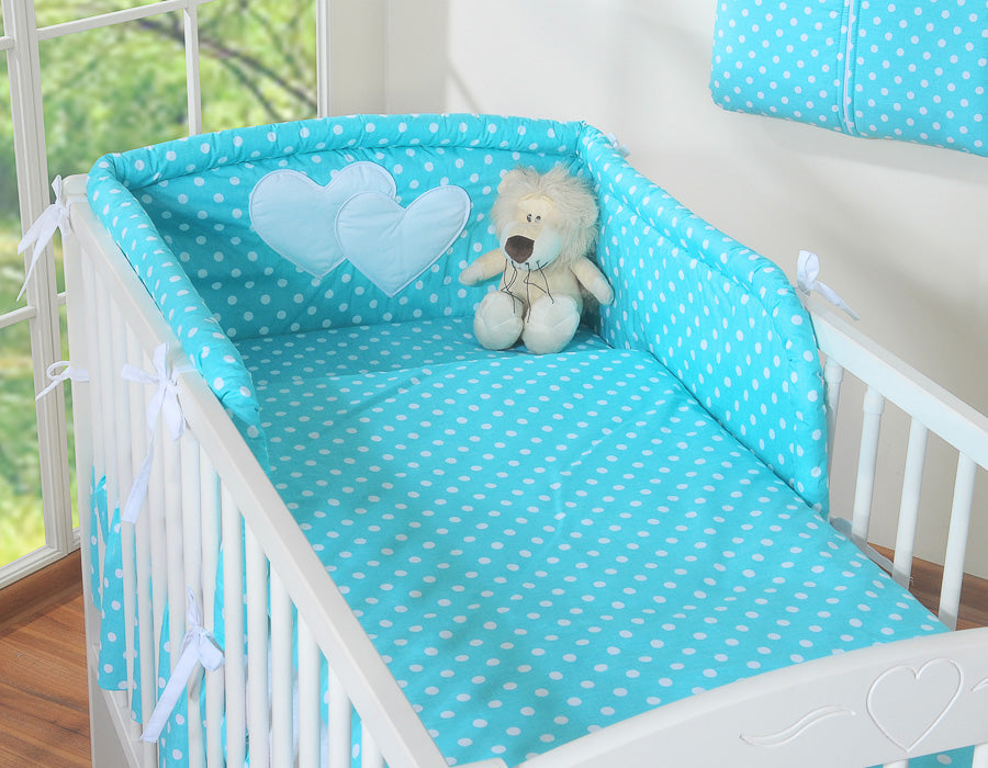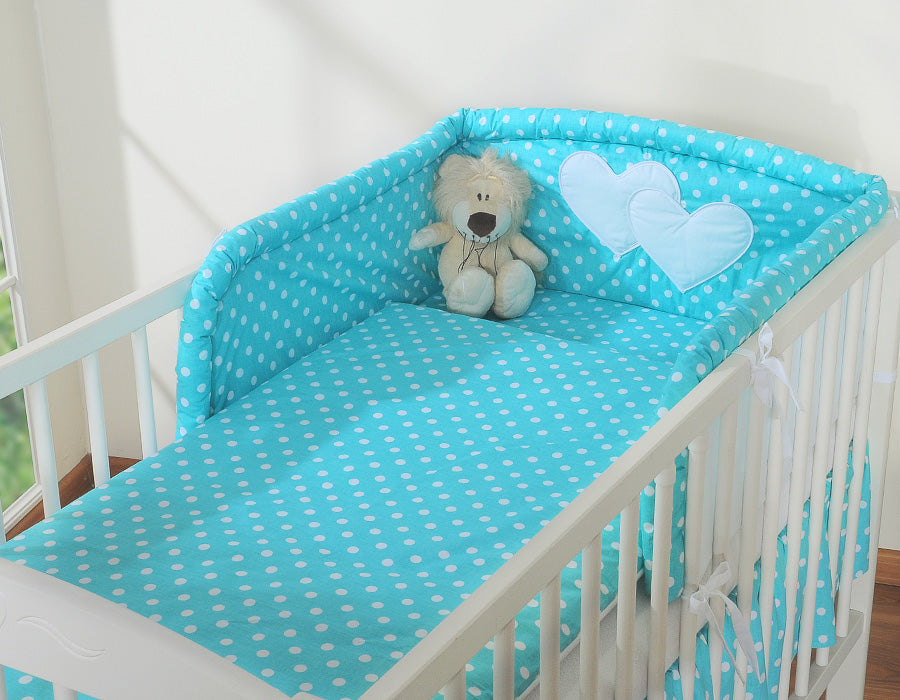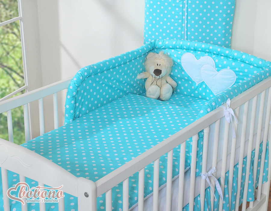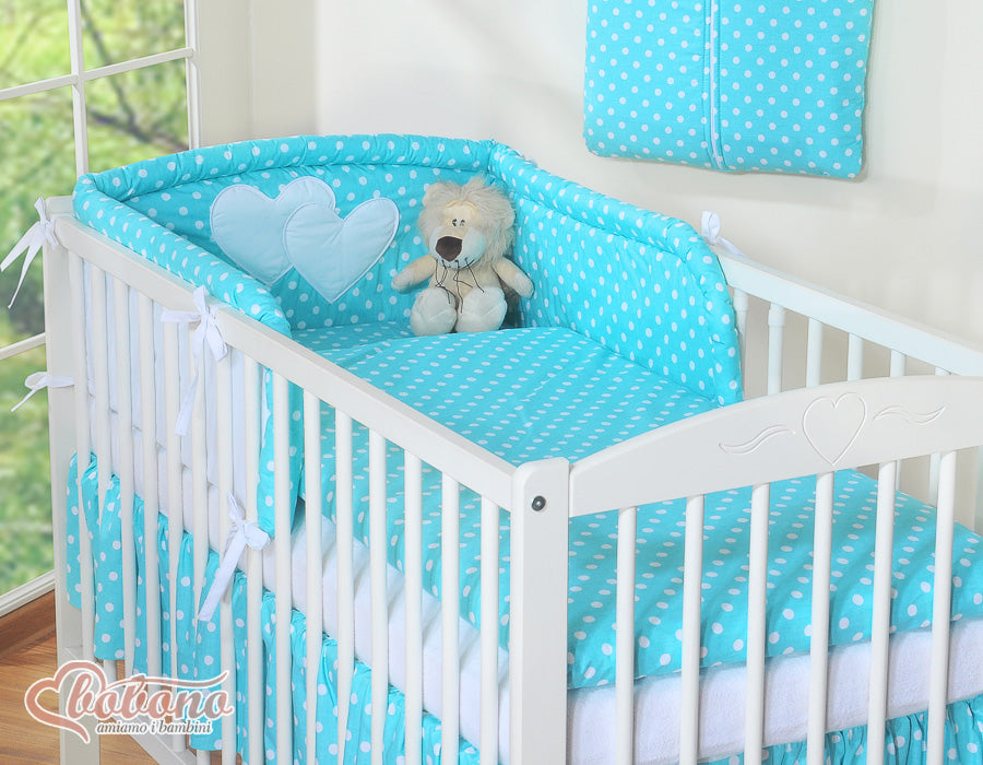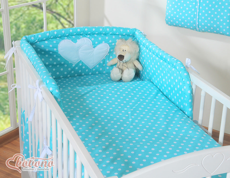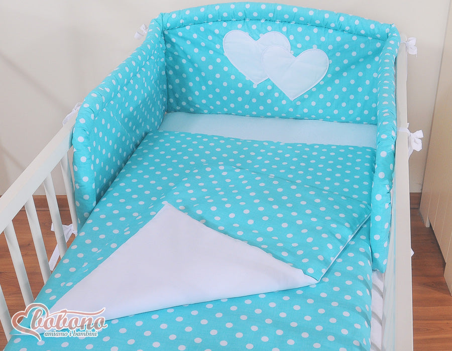 Beddengoed set 2-delig - Hanging Hearts wit met turkooizen stippen