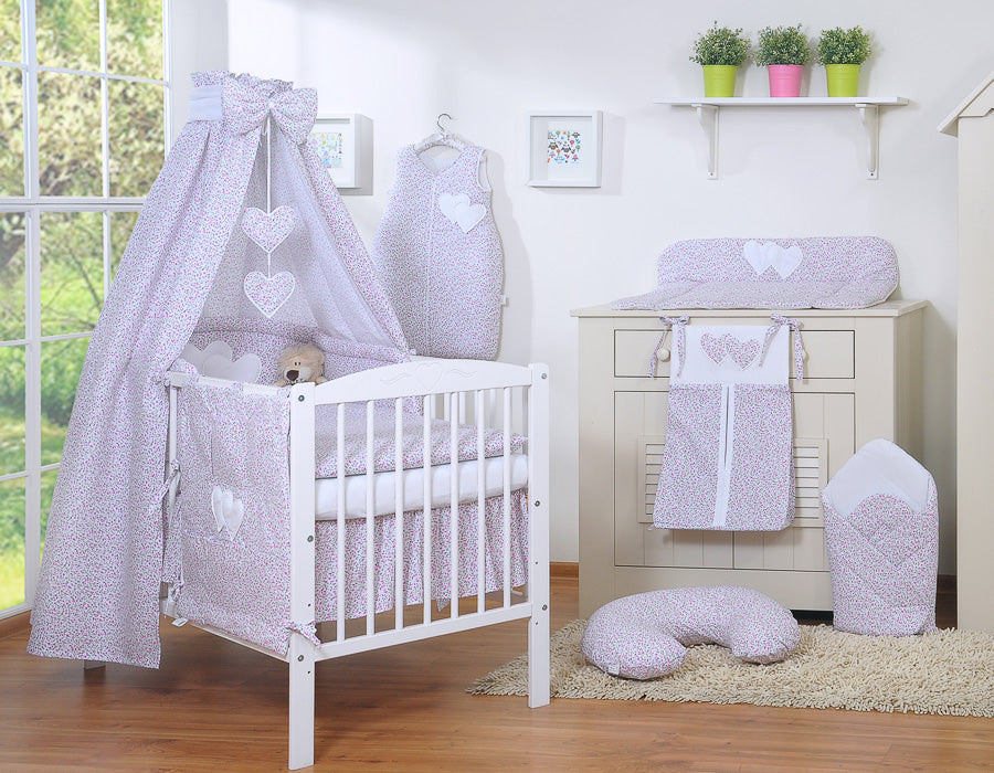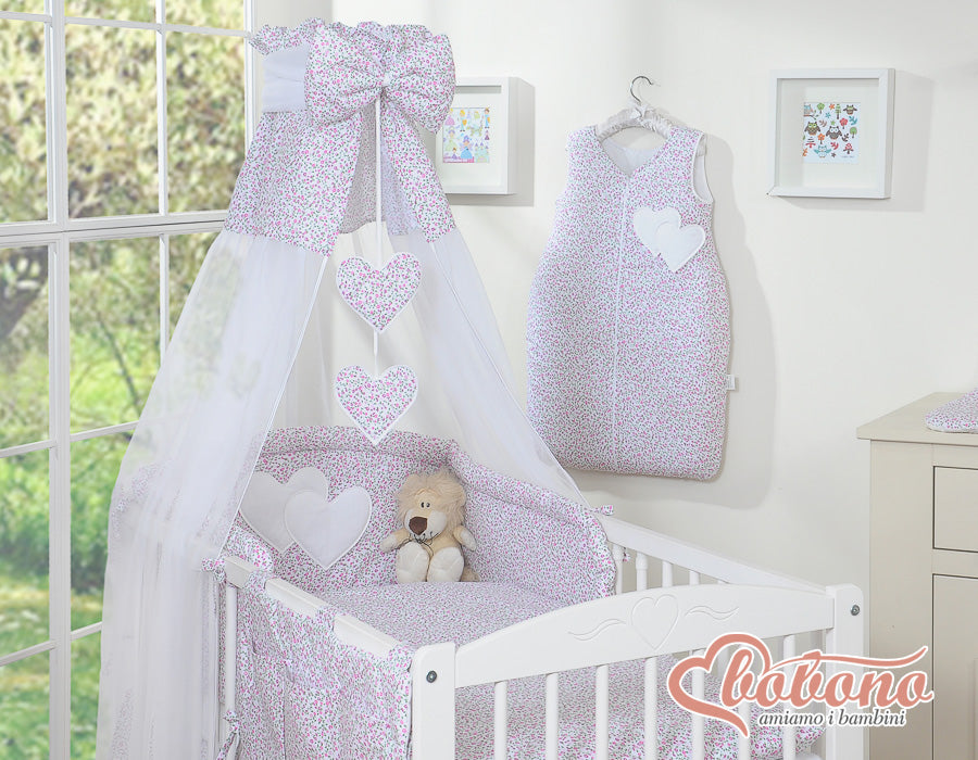 Beddengoed Set van 5 Stuks Met Canopy – Hanging Hearts met Kleine Roze Bloemen