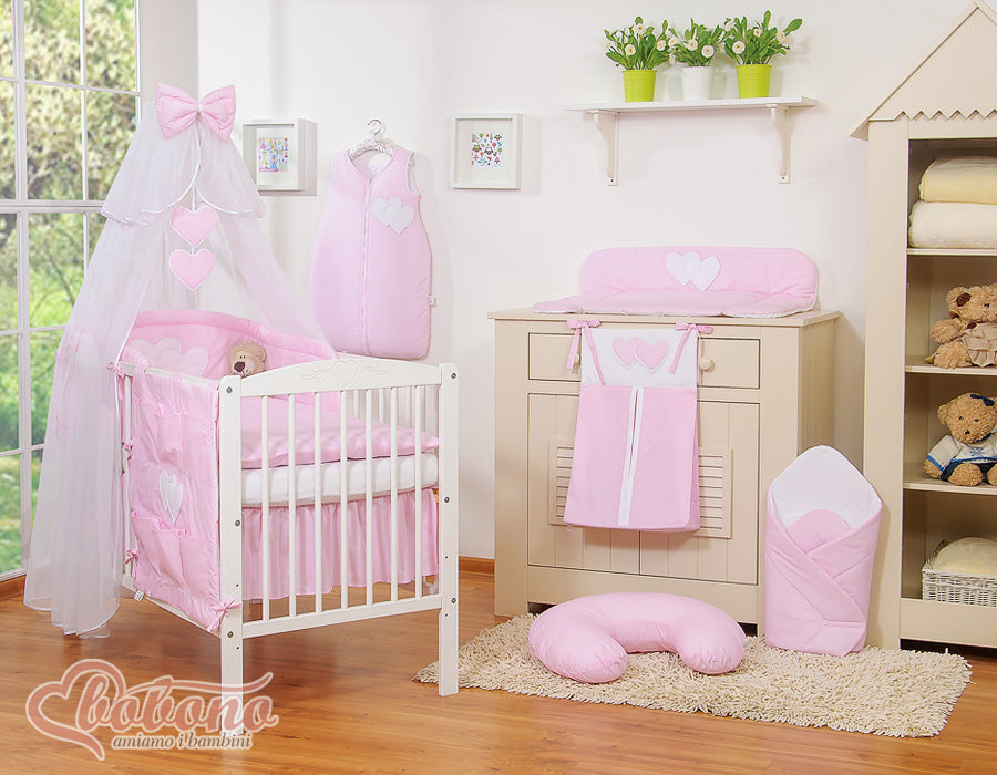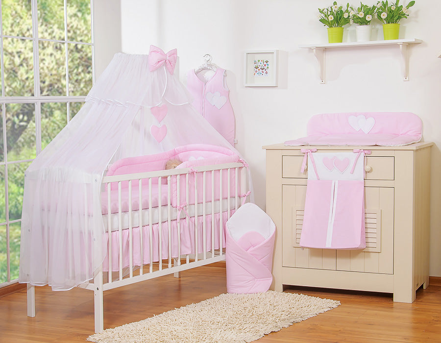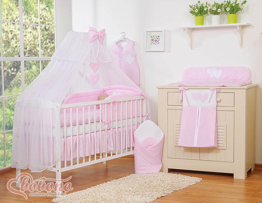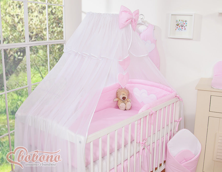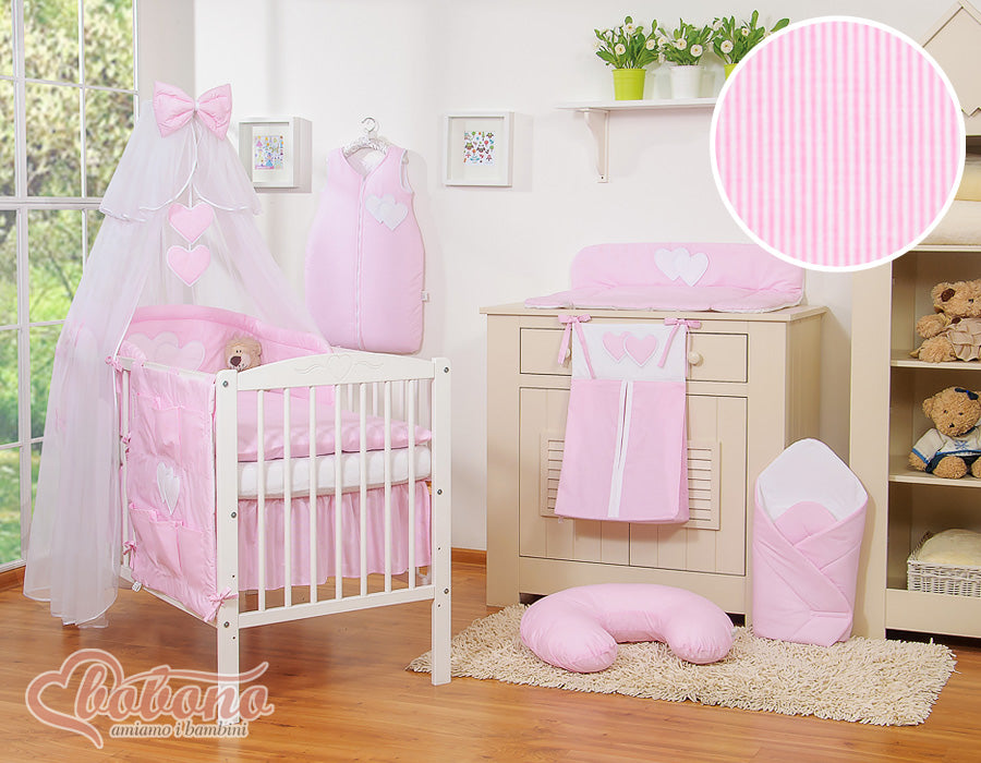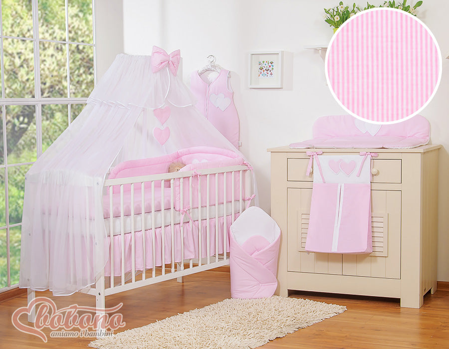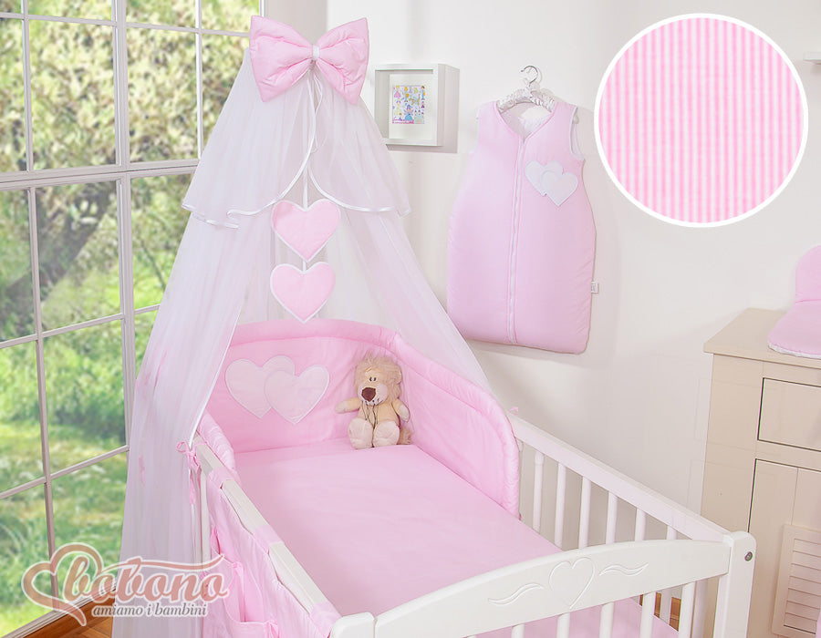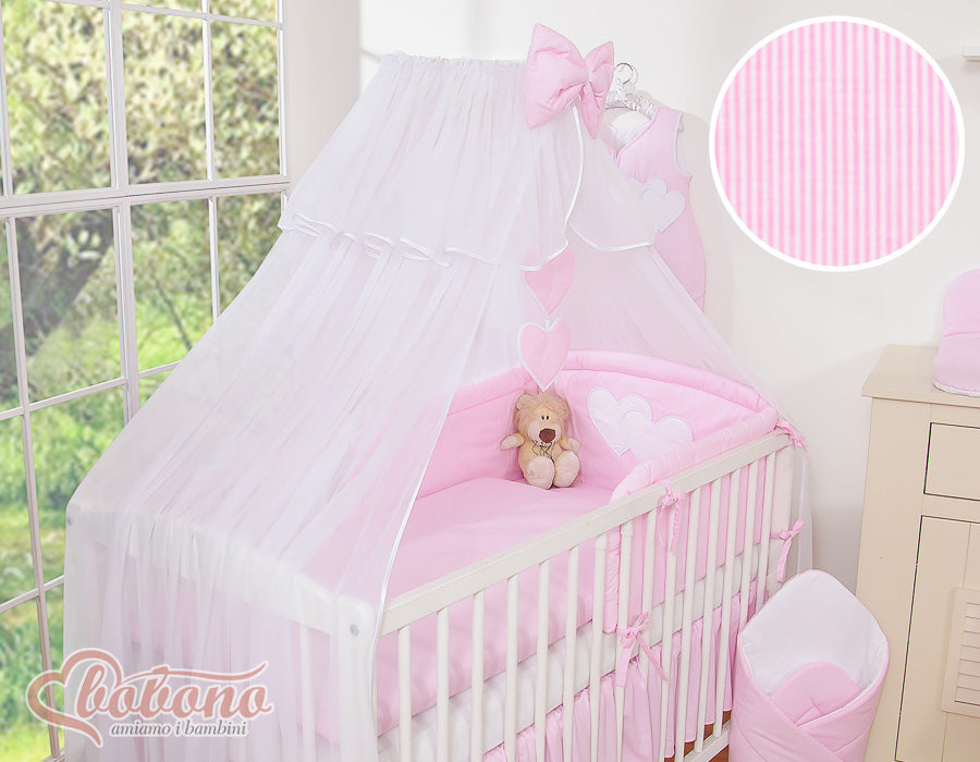 Beddenset 5-delig met klamboe - Hanging Hearts roze strepen