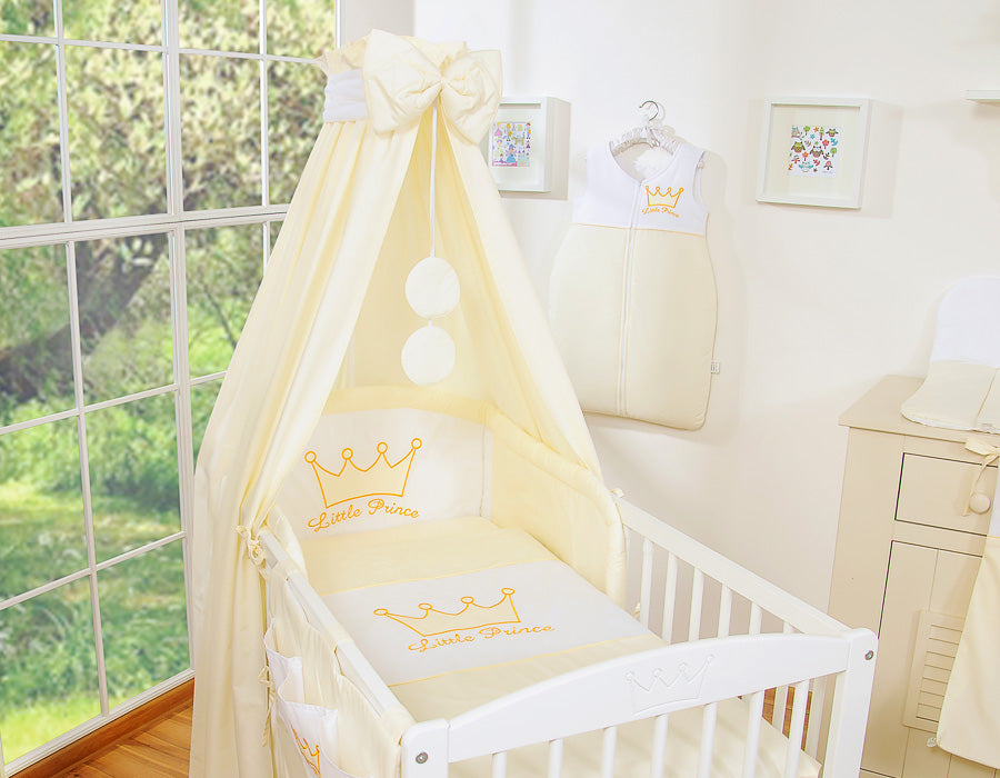 Deze betoverende kinderbeddenset is speciaal ontworpen voor kleine prinsen en prinsesjes. Creëer een warme en gezellige sfeer in de babykamer met deze luxe 5-delige set inclusief een prachtige hemel.