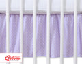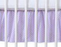 Elegante decoratie voor elke babybedje met een witte polkadotprint op lila achtergrond. Deze bedomrander van 100% katoen bedekt de ruimte tussen de lade en de onderkant van het bedje en matras, waardoor het geheel er netjes en stijlvol uitziet.