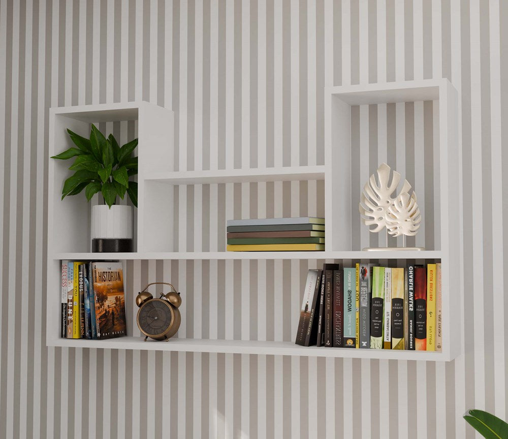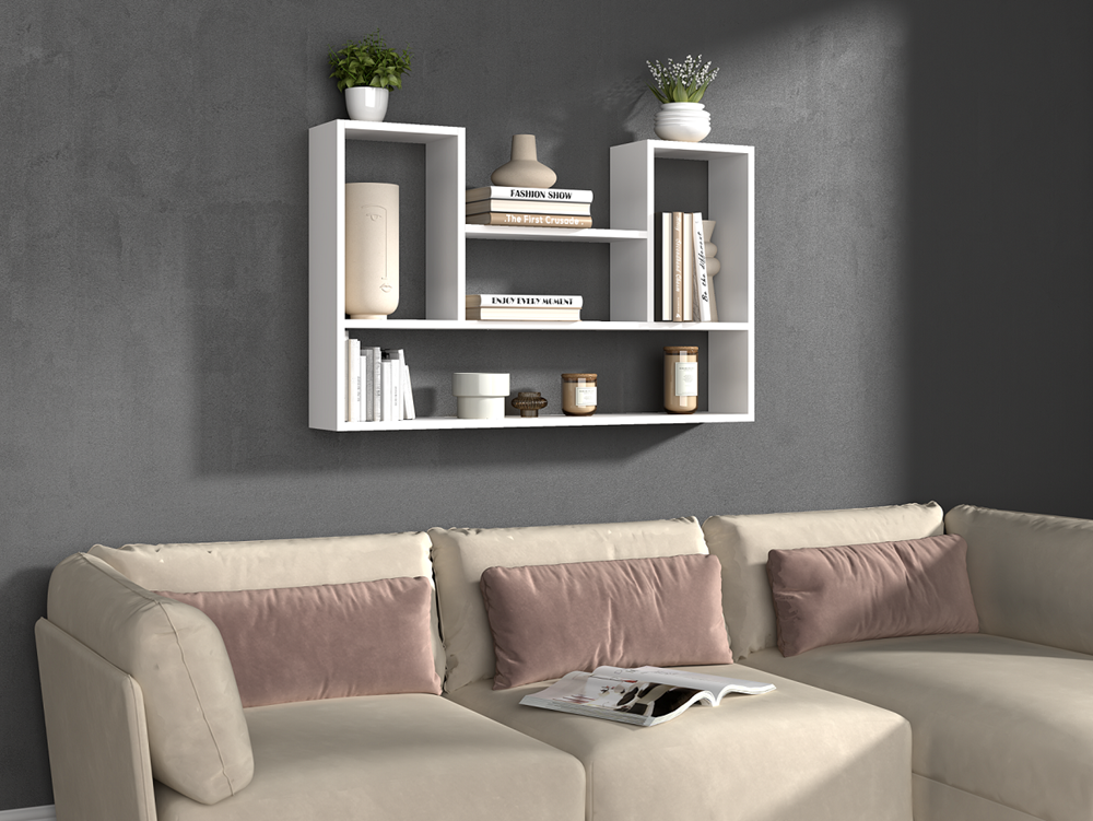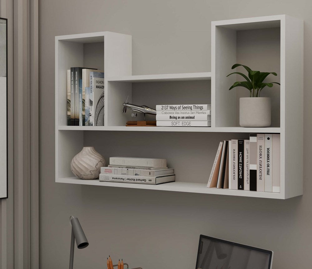 Bilbao 4P hangende wandplank - Stijlvolle opbergruimte | Kleur: Mat wit | Maat: 100x60x16 cm