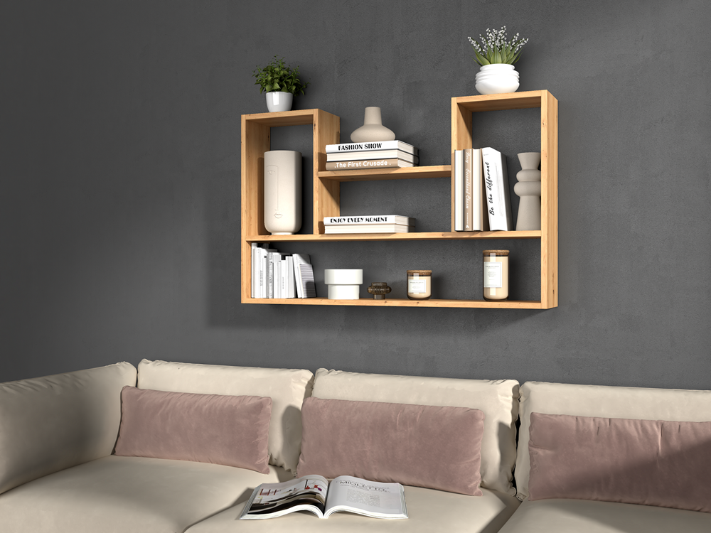 Bilbao 4P muurplank gelamineerd meubelplaat - Wandplank opbergruimte | Kleur: Artisan Eiken
