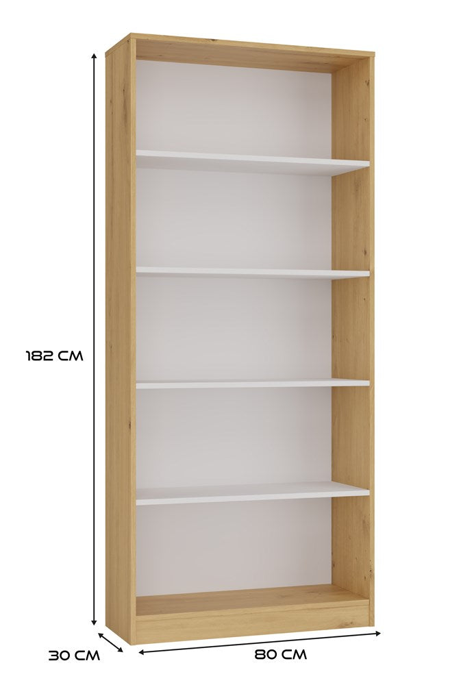 Boekenkast R80 met 5 planken – Artisan Eiken & Wit | Kleur: Artisan eiken/wit | Maat: 182x80x30 cm