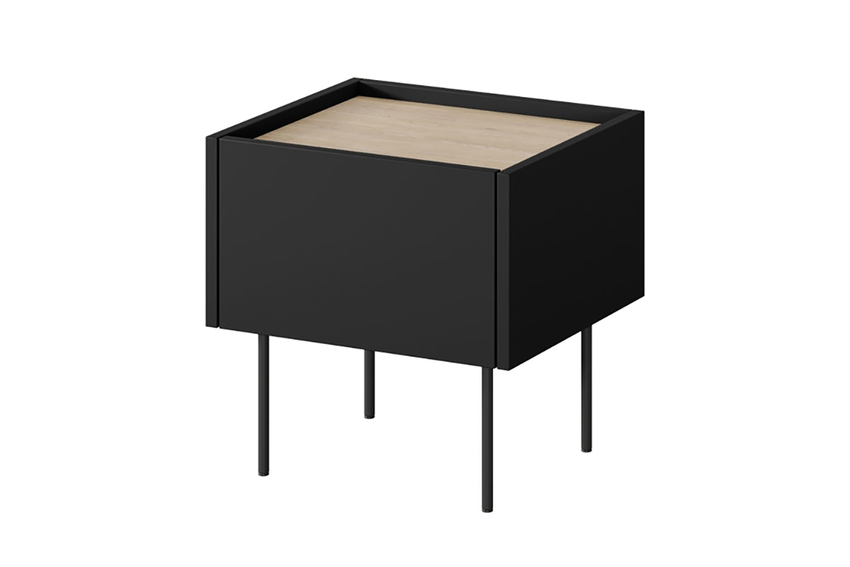 Desin nachtkastje met lade 45 cm – mat zwart / nagano eiken