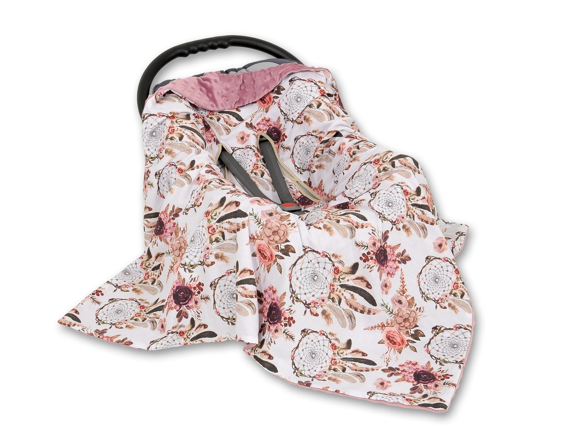 Grote Dubbelzijdige Autostoeldeken voor Baby's - Flower Dream Catchers / Pastel Violet