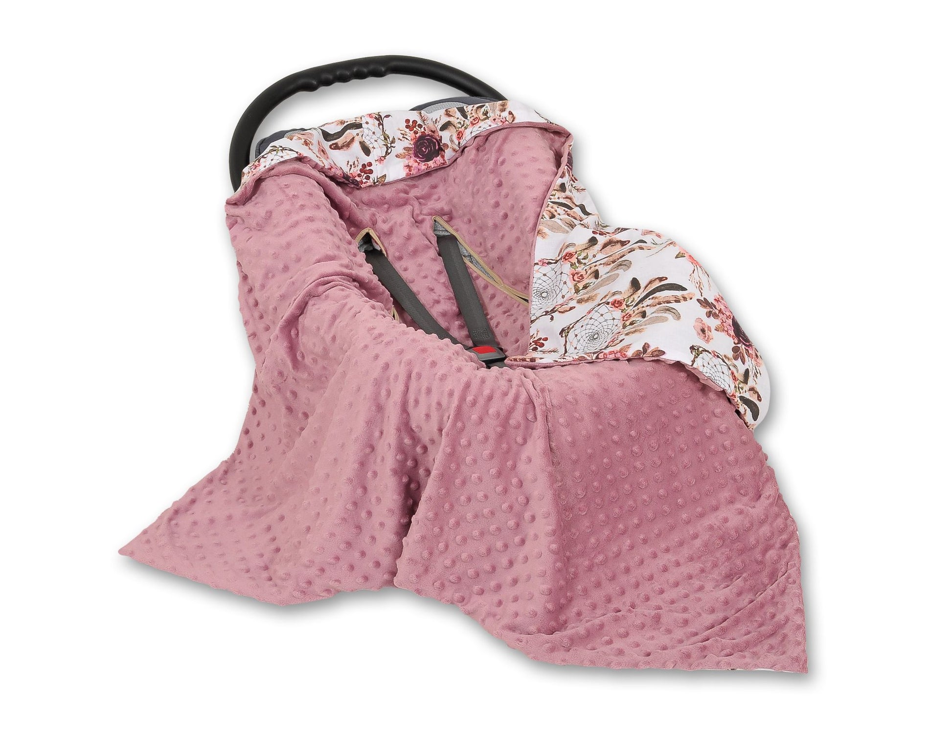 Grote autostoeldeken baby - wikkeldeken - dubbelzijdig & warm met minky voor comfort