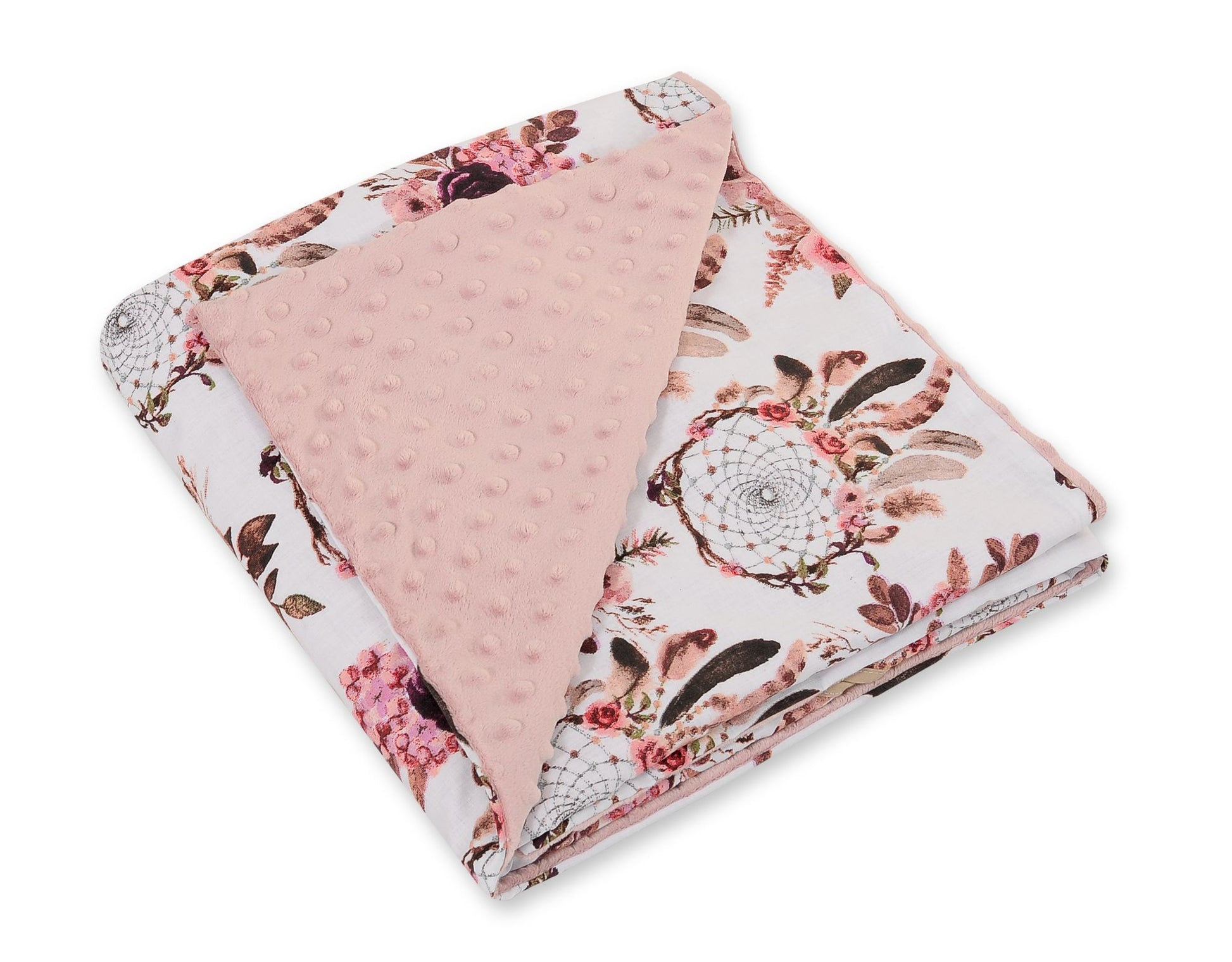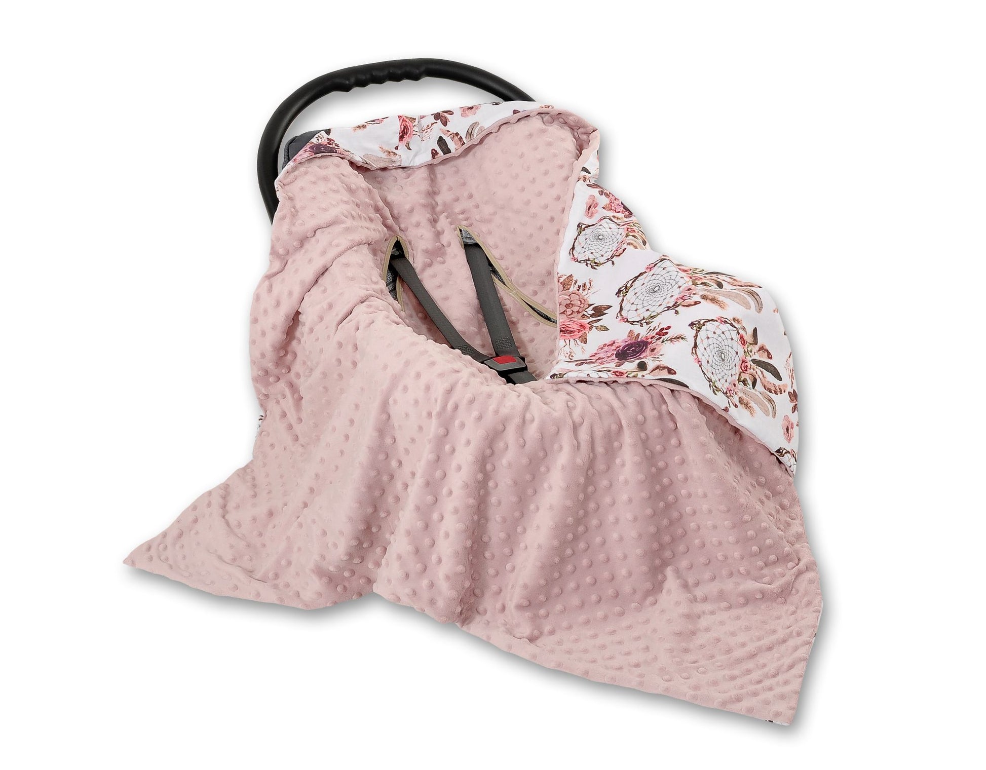 Grote Dubbelzijdige Autostoel Deken voor Baby's - Flower Dream Catchers / Pastel Roze