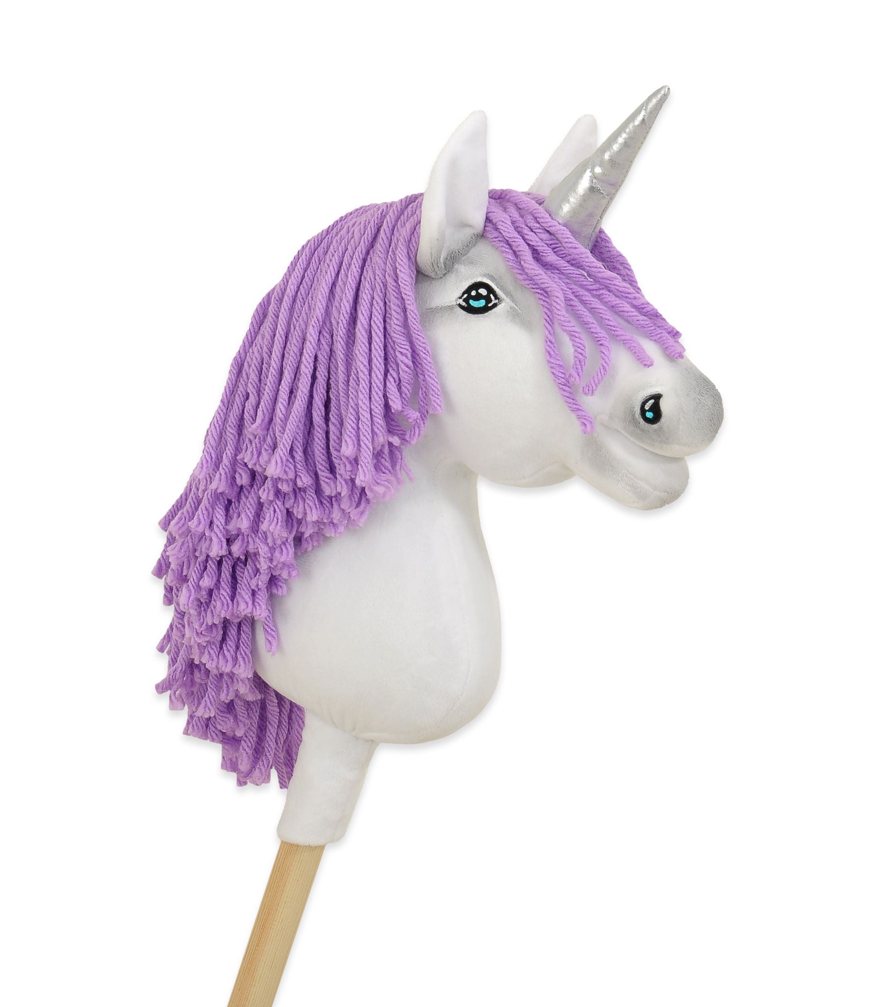 Hobby Paardje Kleine Eenhoorn op Stok - Wit met Lila Manen en Zilveren Hoorn