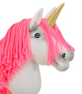 Hobby Paardje Little Unicorn op Stok - Wit met Neon Roze Manen en Gouden Hoorn