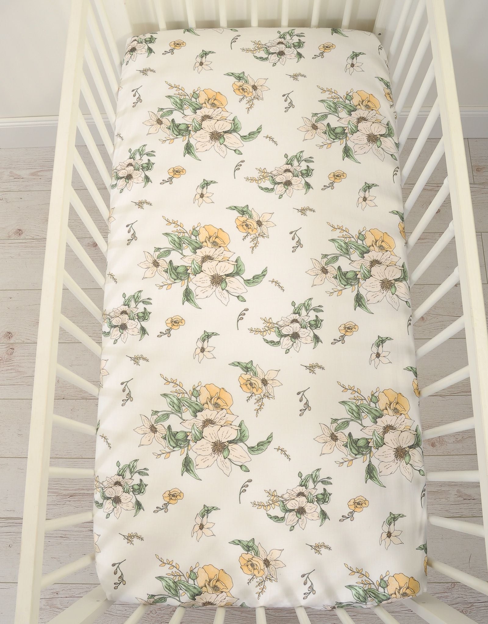 Hoeslaken 120x60 cm katoen – fitted laken – zacht & veilig voor babybed – clematis op beige