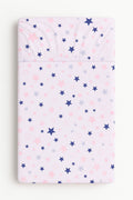 Hoeslaken babybed, laken, 100% katoen – perfecte pasvorm – 140x70 cm – roze-donkerblauwe sterren