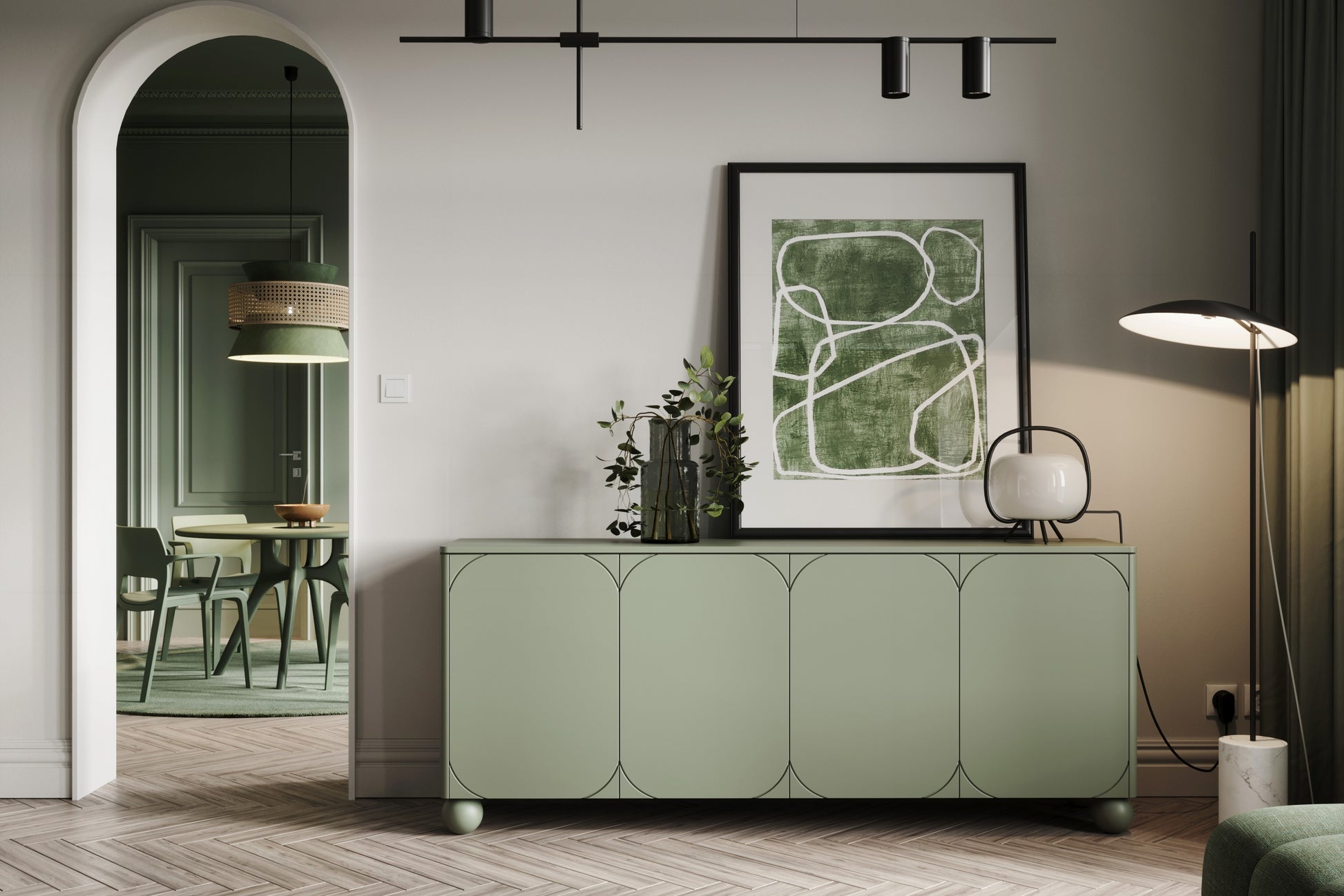De Sonatia II ladekast combineert stijl met functionaliteit dankzij een elegante matte olijfgroene afwerking en een robuuste constructie van 18 mm dik MDF. Met vier deuren en vier verborgen laden biedt deze kast volop opbergruimte voor al uw spullen. Dankzij de stalen scharnieren met stille sluiting en het "push to open" systeem geniet u van optimaal gebruiksgemak. Het samenhangende ontwerp past perfect bij diverse interieurstijlen, van modern tot klassiek, en voegt karakter en charme toe aan elke kamer.