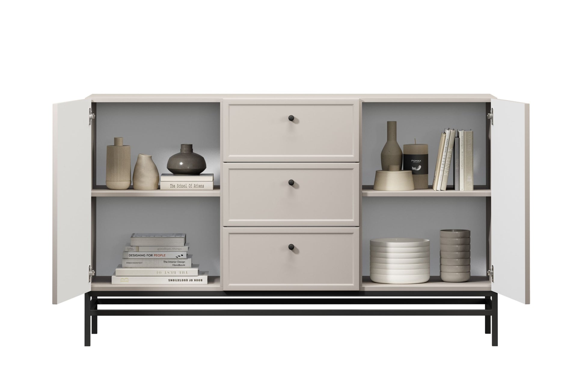 Lorini ladekast 150 cm – Kasjmier met zwart metalen frame | Kleur: Kasjmier | Maat: 150x90x45 cm