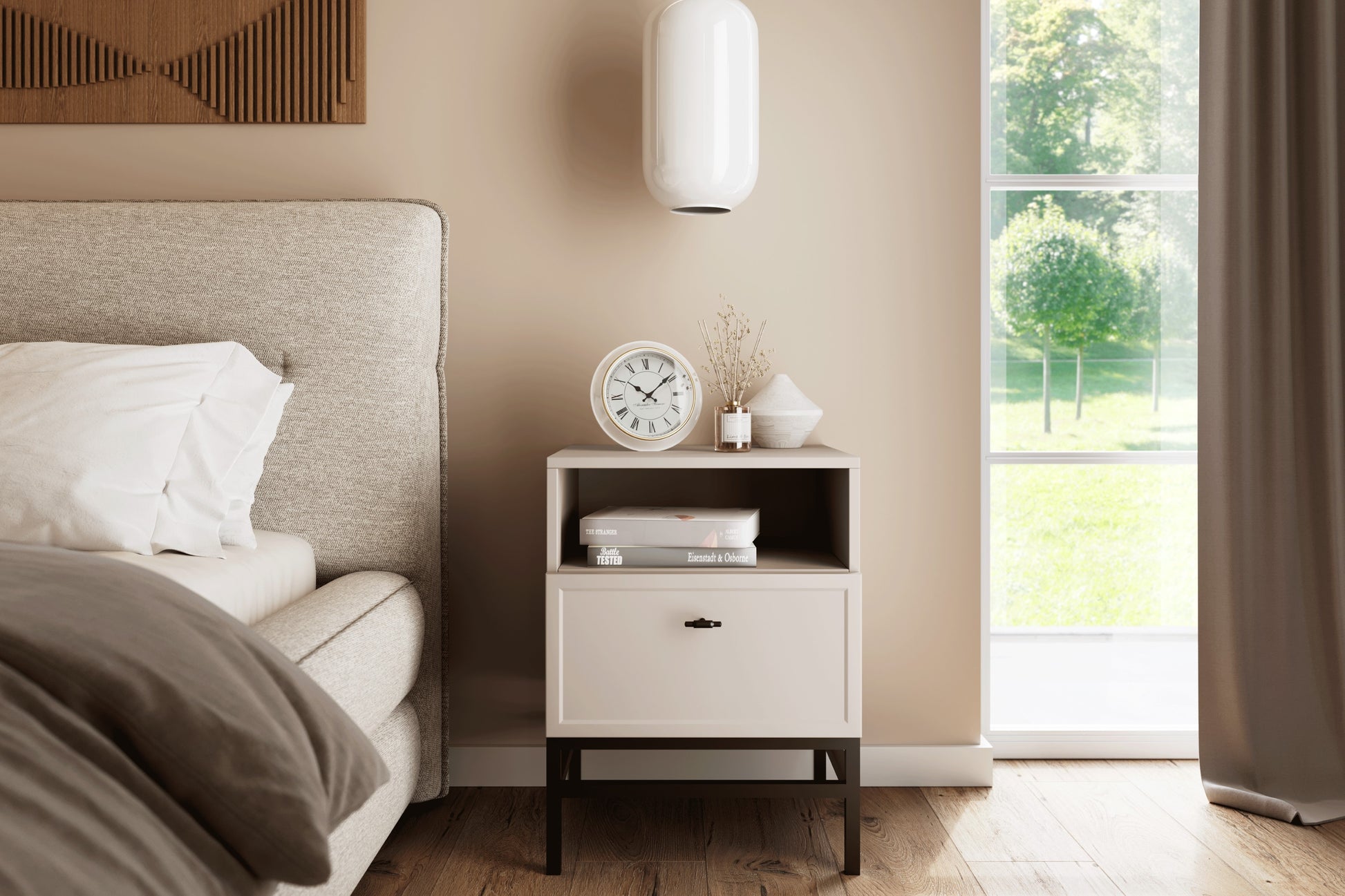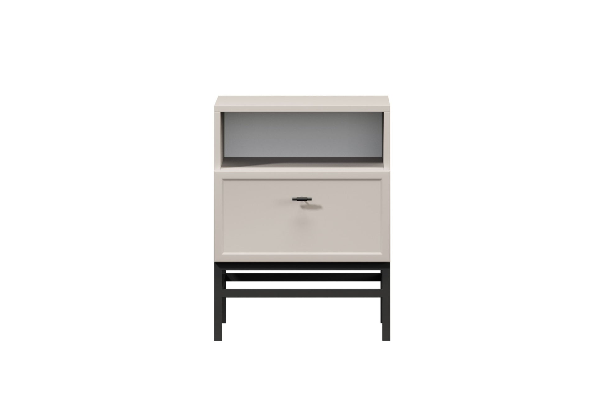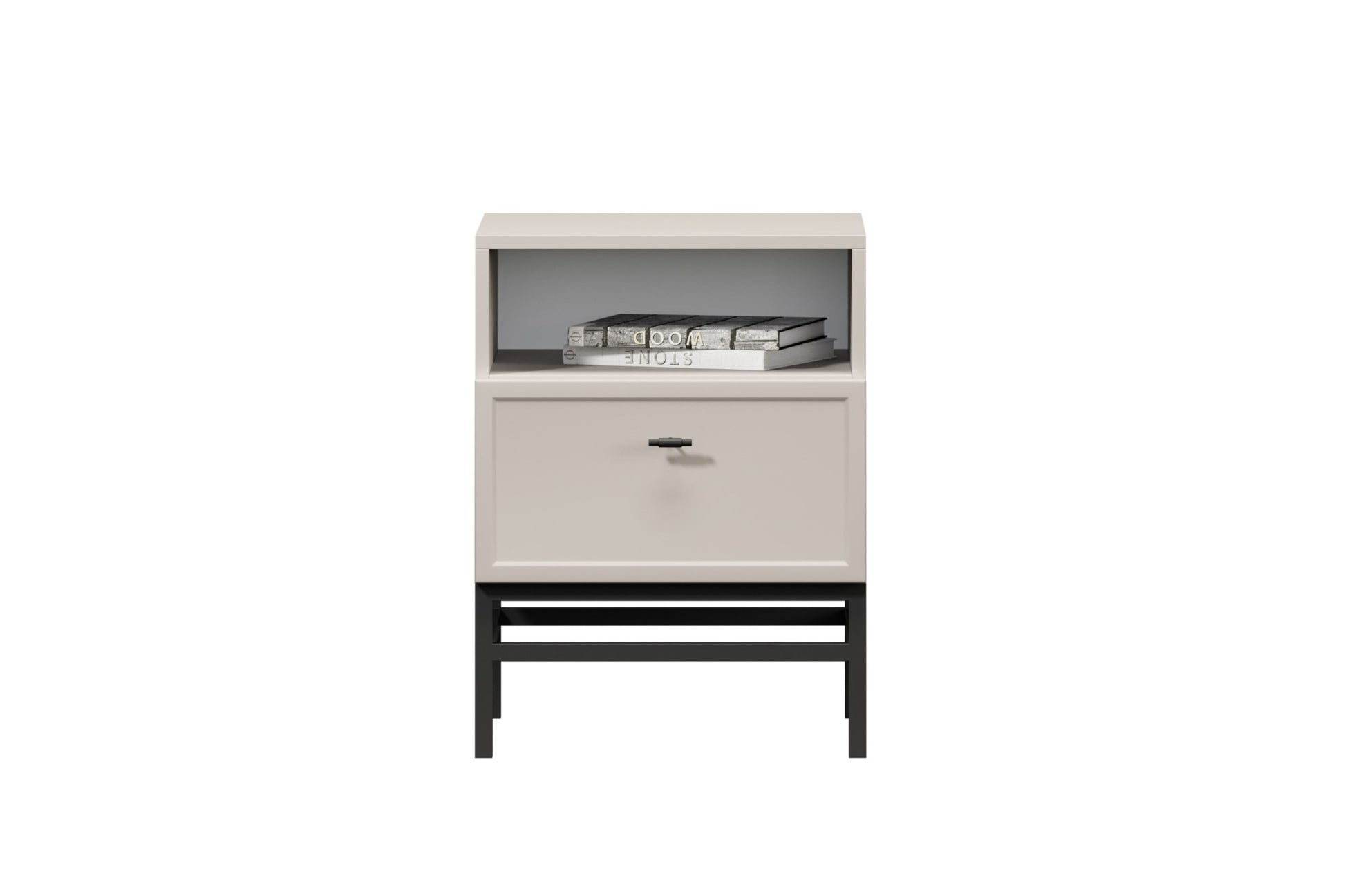 Lorini Nachtkastje met Lade 45 cm - Modern Melamine & MDF | Kleur: Kasjmier/Zwart