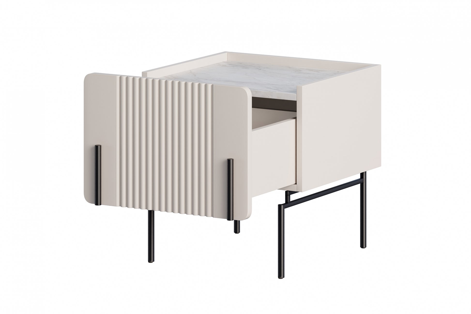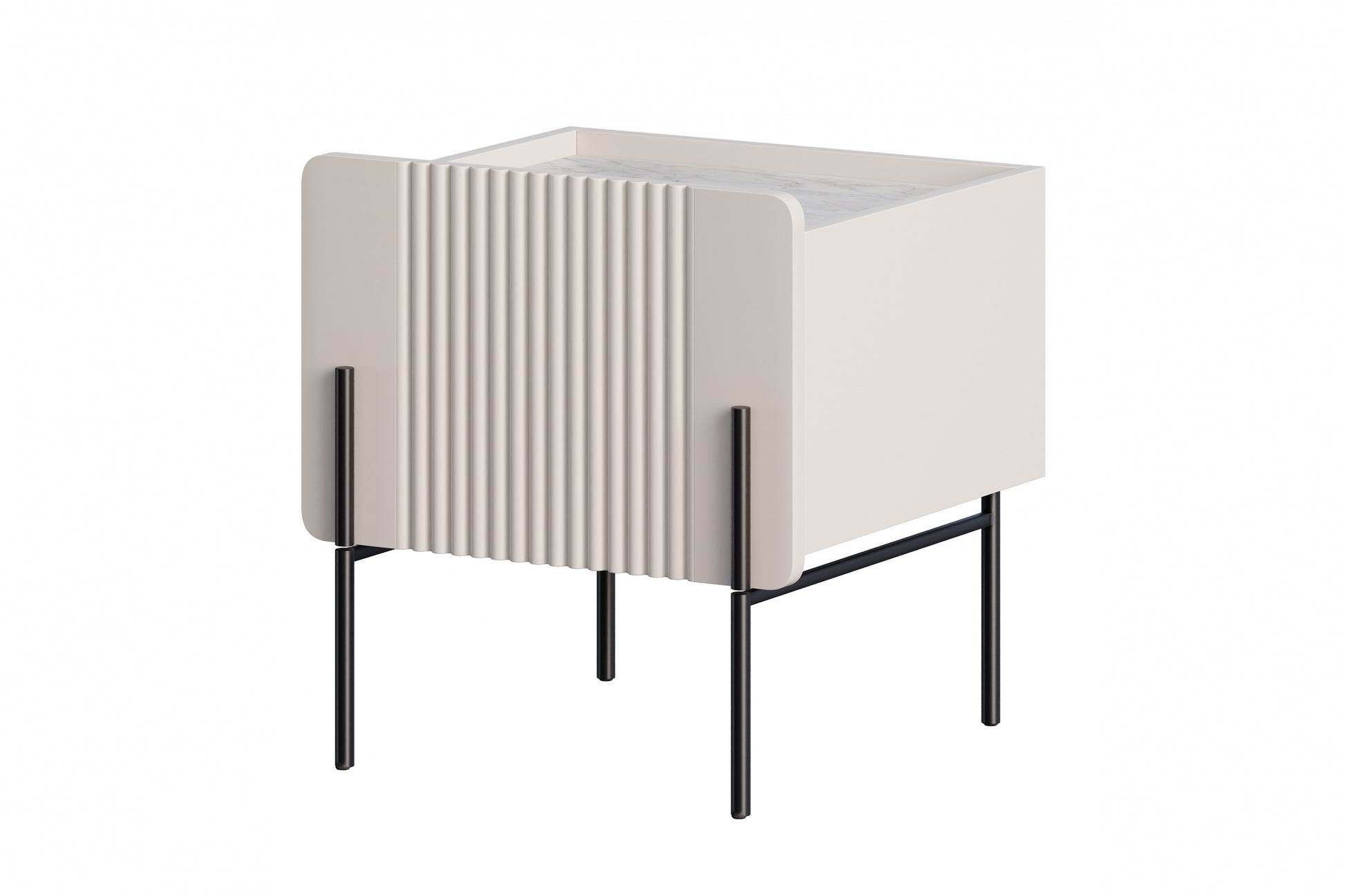 Malmi Nachtkastje met Lade 45 cm – Mat Kasjmier / Crema Bianca / Zwarte Metalen Poten