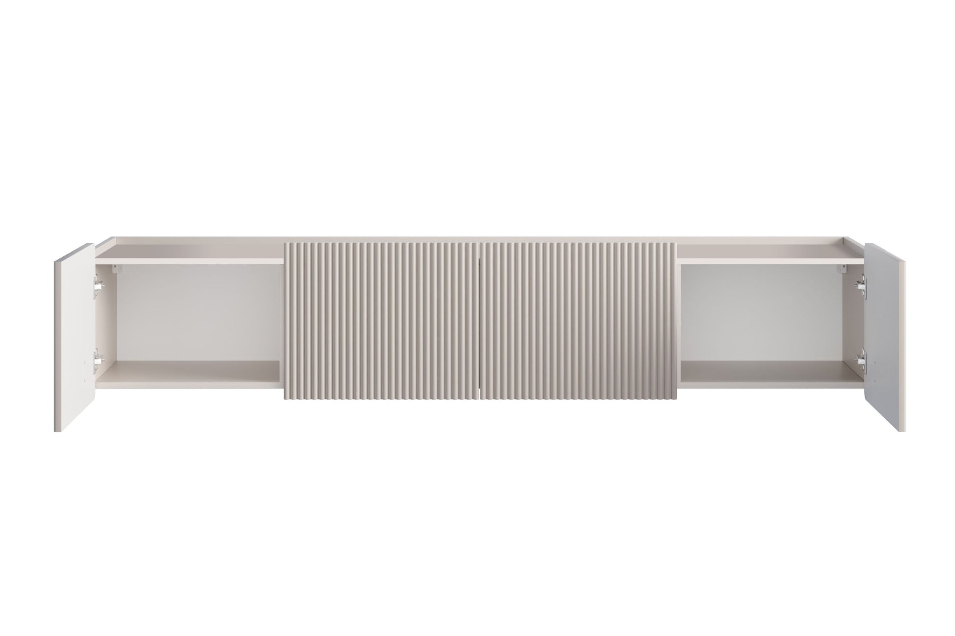 Ervaar ultieme elegantie en functionaliteit met het Malmi TV-meubel van 200 cm in kasjmier/goud. Dit moderne, hangende meubel is afgewerkt in een matte kasjmier tint met prachtige gouden accenten op de handgrepen. De geribbelde 18 mm MDF-fronten creëren diepte, terwijl de afgeronde randen het design verrijken. Het meubel zweeft boven de vloer en biedt een gevoel van lichtheid aan uw interieur. Dankzij hoogwaardige materialen zoals gelamineerde plaat en stille sluiting in scharnieren en lades, is duurzaamheid en gebruiksgemak gegarandeerd.